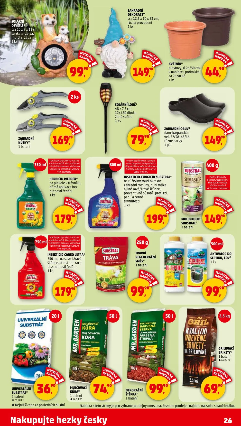 V letáku také najdete mulčovací kůru, dekorativní štěpku a grilovací brikety.