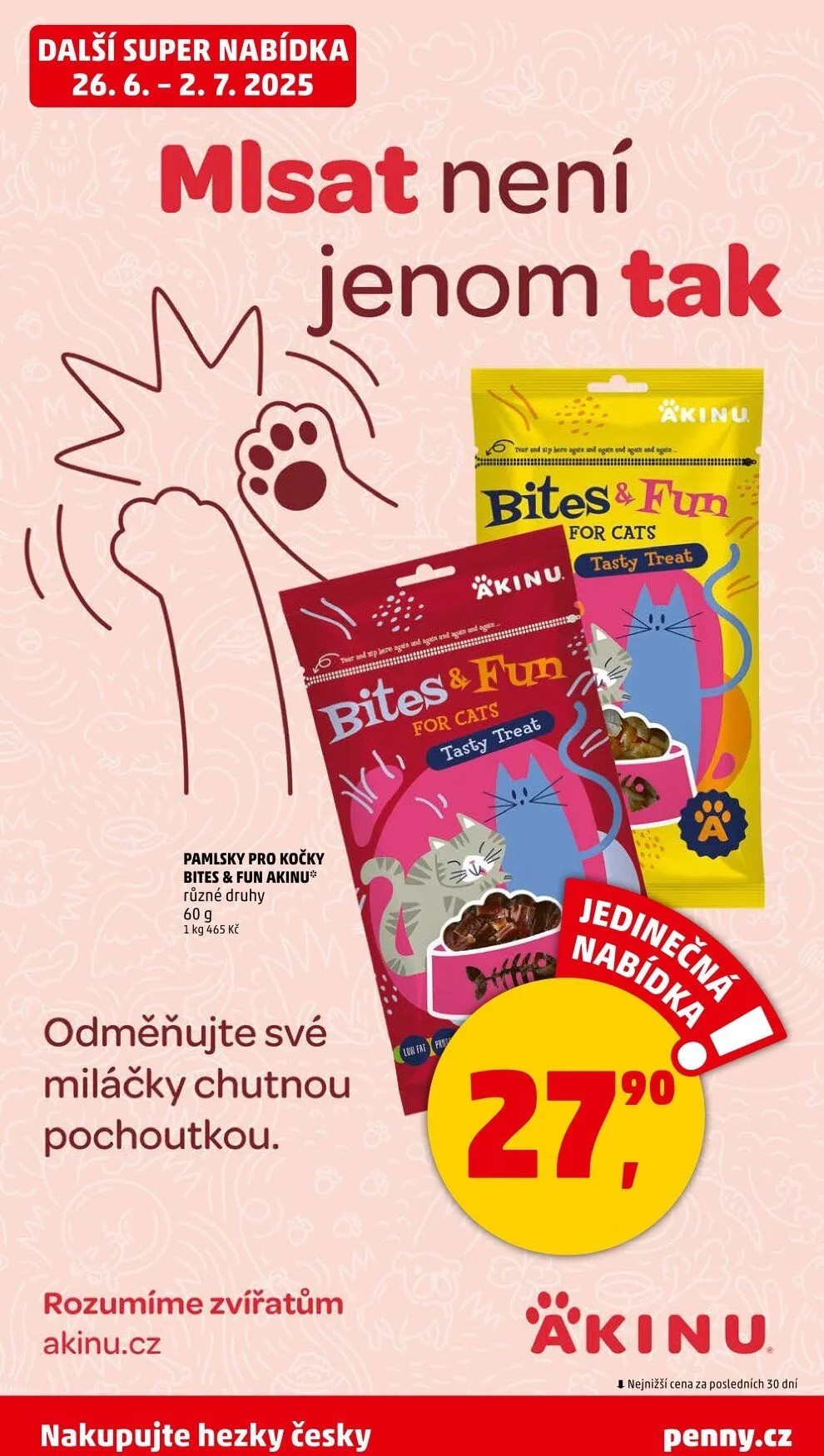 Od 26. 6. do 2. 7. 2025 si můžete pořídit pamlsky pro kočky značky Akino.