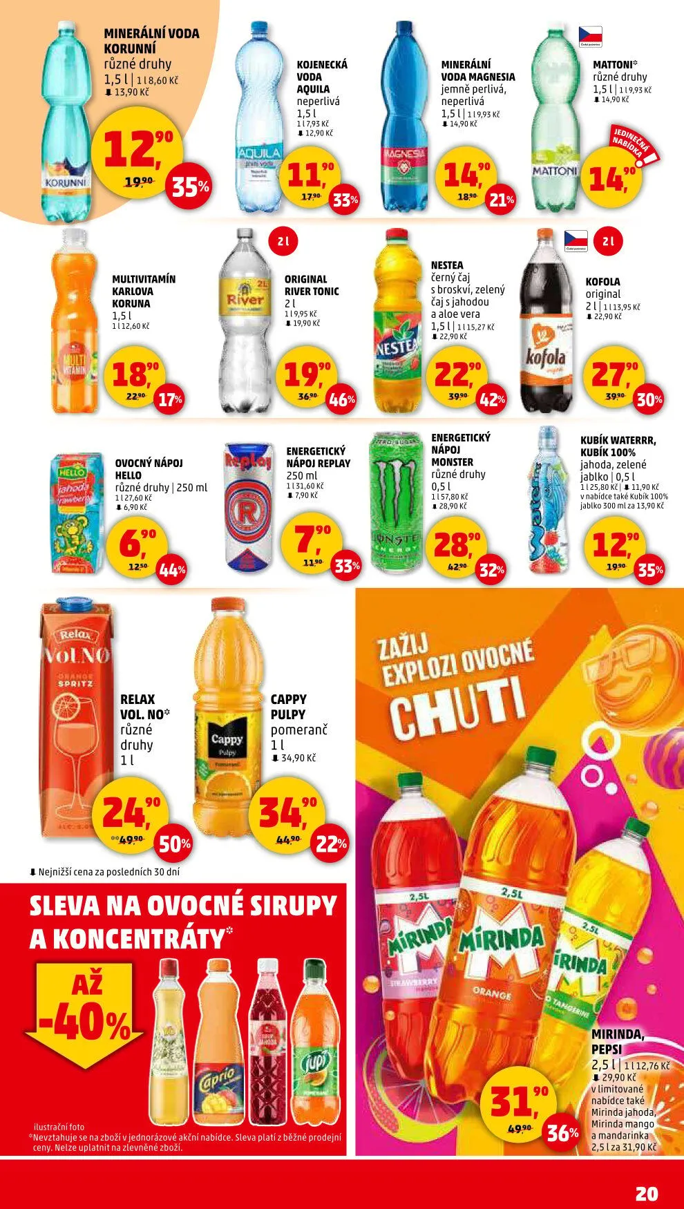 Nenechte si ujít také Cappy Pulpy pomeranč za 34,90 Kč a Mattoni v různých druzích za 14,90 Kč.