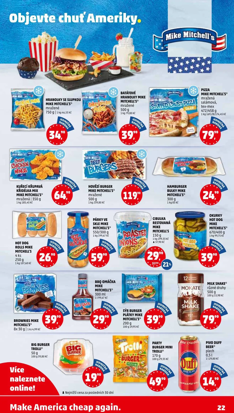 Nezapomeňte na sýrové plátky burger (200 g) za 19,95 Kč a mraženou pizzu (472/458 g) v salámové nebo tex-mex variantě.