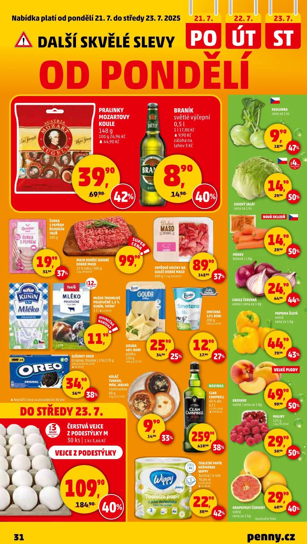V letáku obchodu Penny Market najdete skvělé nabídky, které platí od pondělí 21.7. do středy 23.7.2025. Mezi lákavé produkty patří: