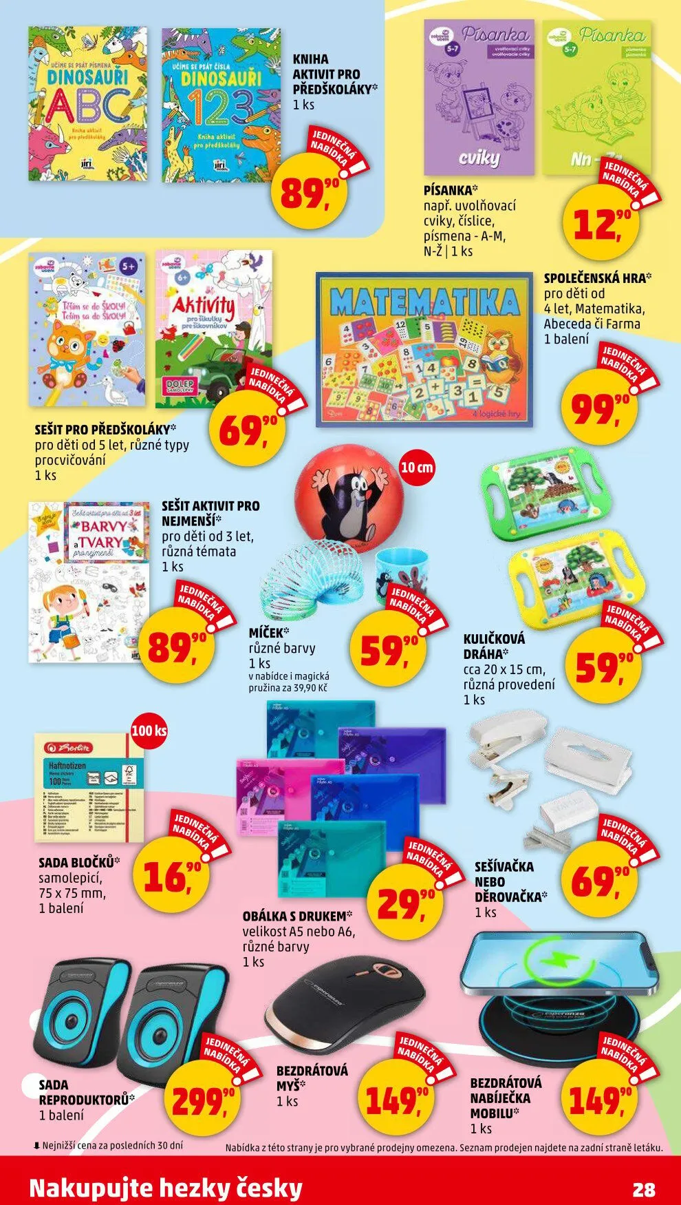 Nabídka zahrnuje také samolepicí bločky, reproduktory a sešit aktivit pro nejmenší. Pro kreativní hru jsou k dispozici míčky v různých barvách a magická pružina. Nechybí ani obálky s drukem a bezdrátová myš. Pro milovníky stavebnic je tu kuličková dráha a pro kancelářské potřeby sešívačka nebo děrovačka.