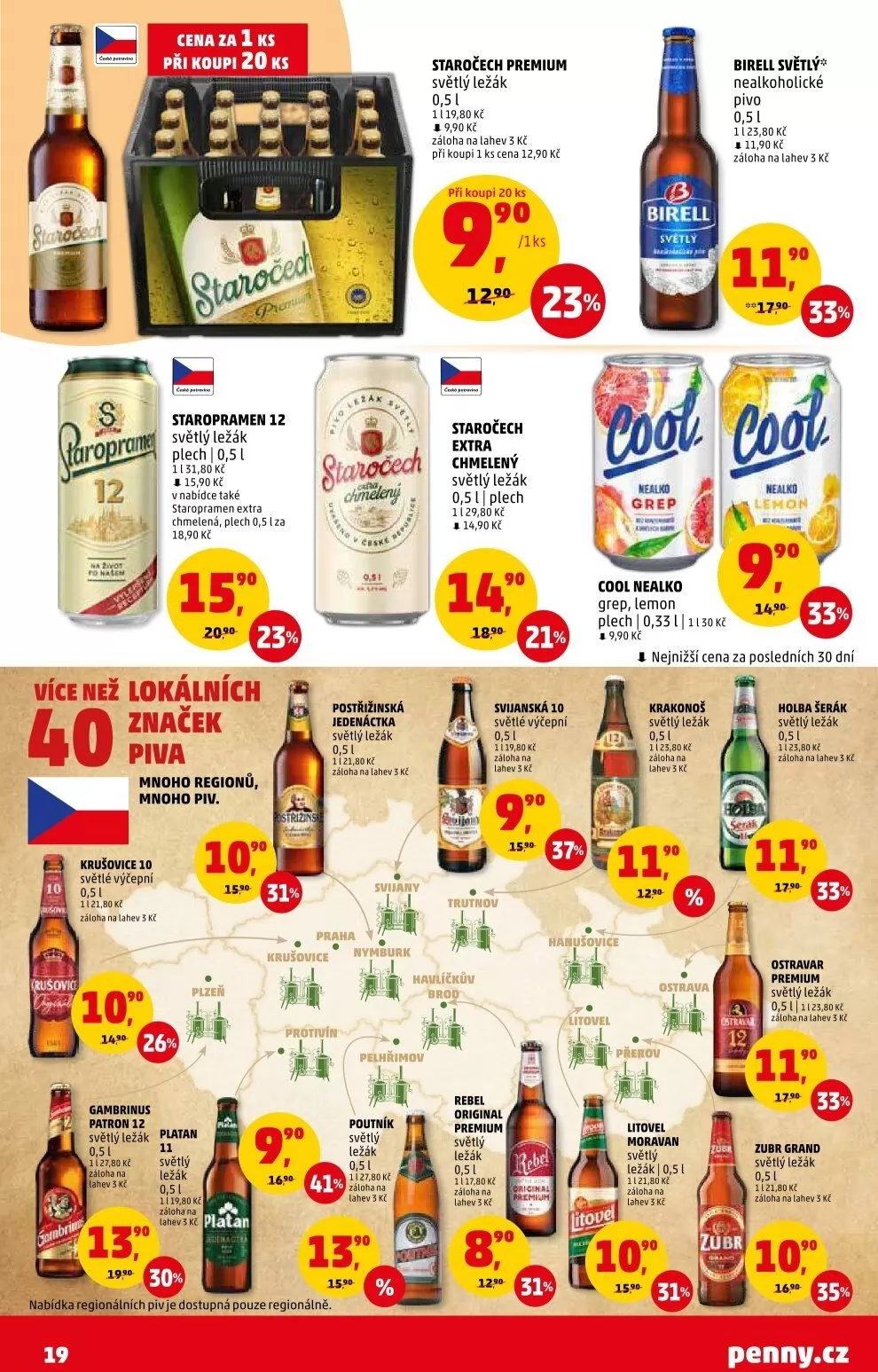 nabídka regionálních piv je dostupná pouze regionálně.
