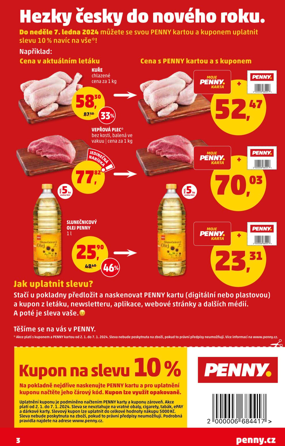 akce platí s kuponem a penny kartou od 2.1. do 7.1.2024. sleva nebude poskytnuta na zboží, pokud to právni předpisy neumožňuji. vice informaci na www.penny.cz.