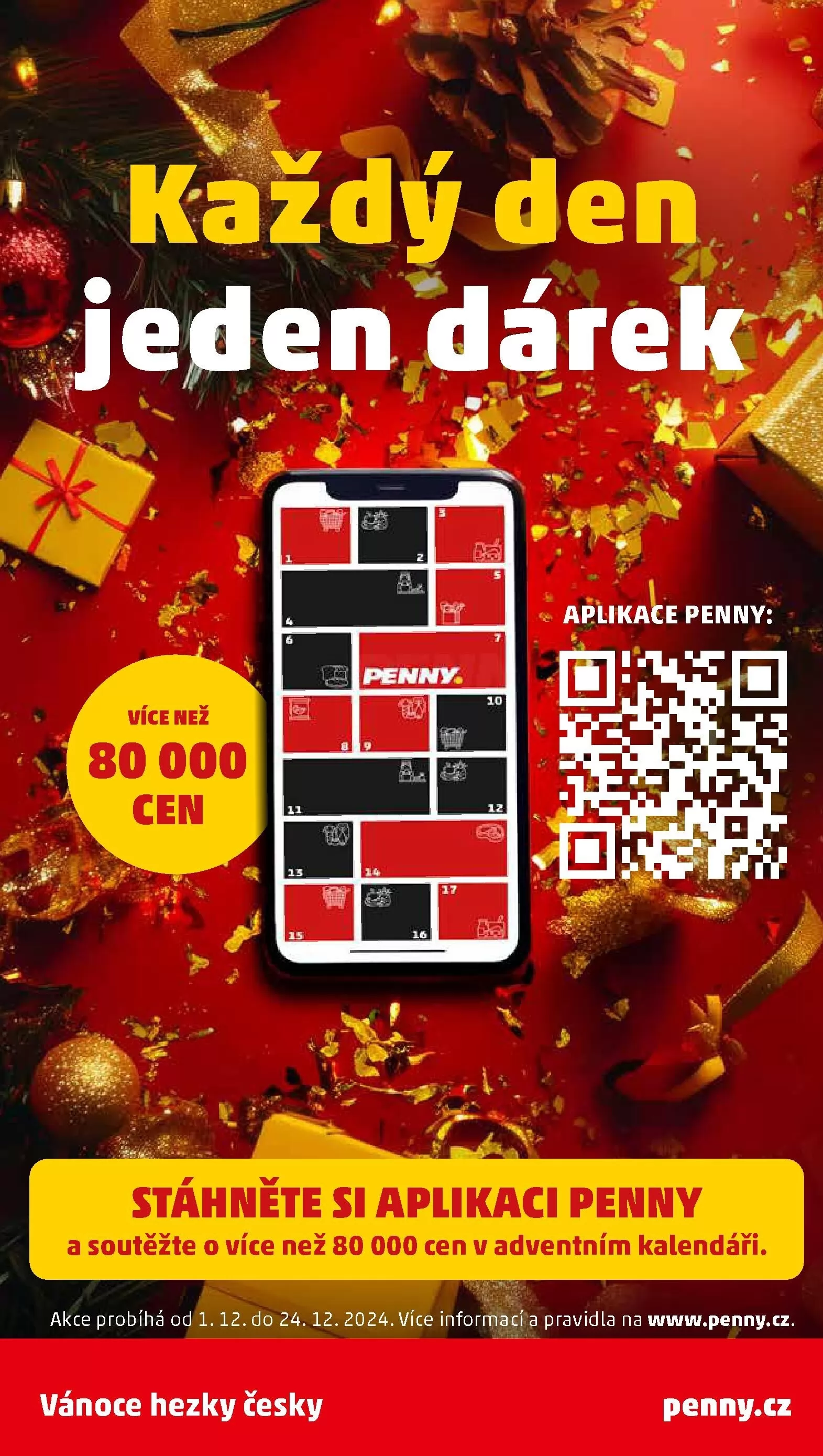 Stáhněte si aplikaci Penny a zapojte se do soutěže o více než 80 000 cen v adventním kalendáři.
