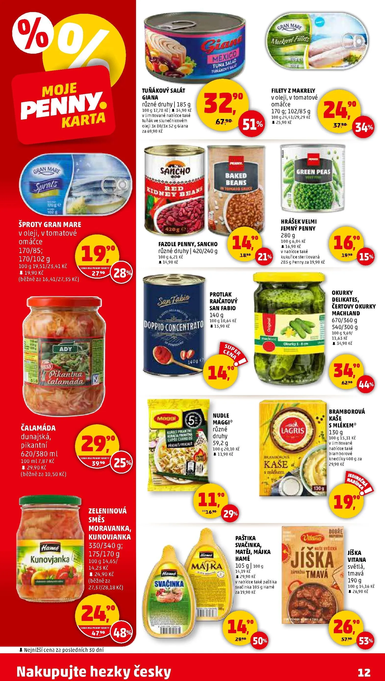 V letáku obchodu Penny Market najdete širokou nabídku kvalitních potravin za výhodné ceny. Mezi produkty patří šproty Gran Mare v oleji a tuňákový salát Giana, které jsou skvělou volbou pro rychlé občerstvení. Dále nabízíme jemný hrášek a kukuřici sterilovanou za skvělé ceny.
