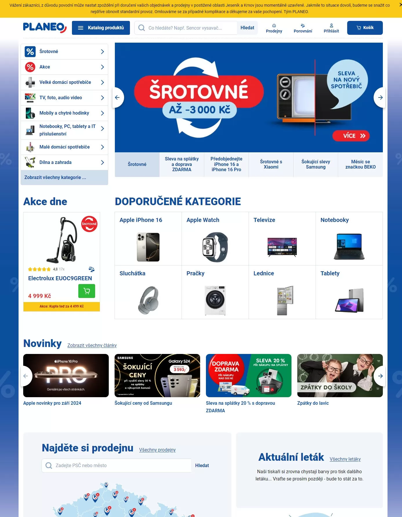 vážení zákazníci, z důvodu povodní může nastat zpoždění při doručení vašich objednávek a prodejny v postižené oblasti jeseník a krnov jsou momentálně uzavřené. jakmile to situace dovolí, budeme se snažit co