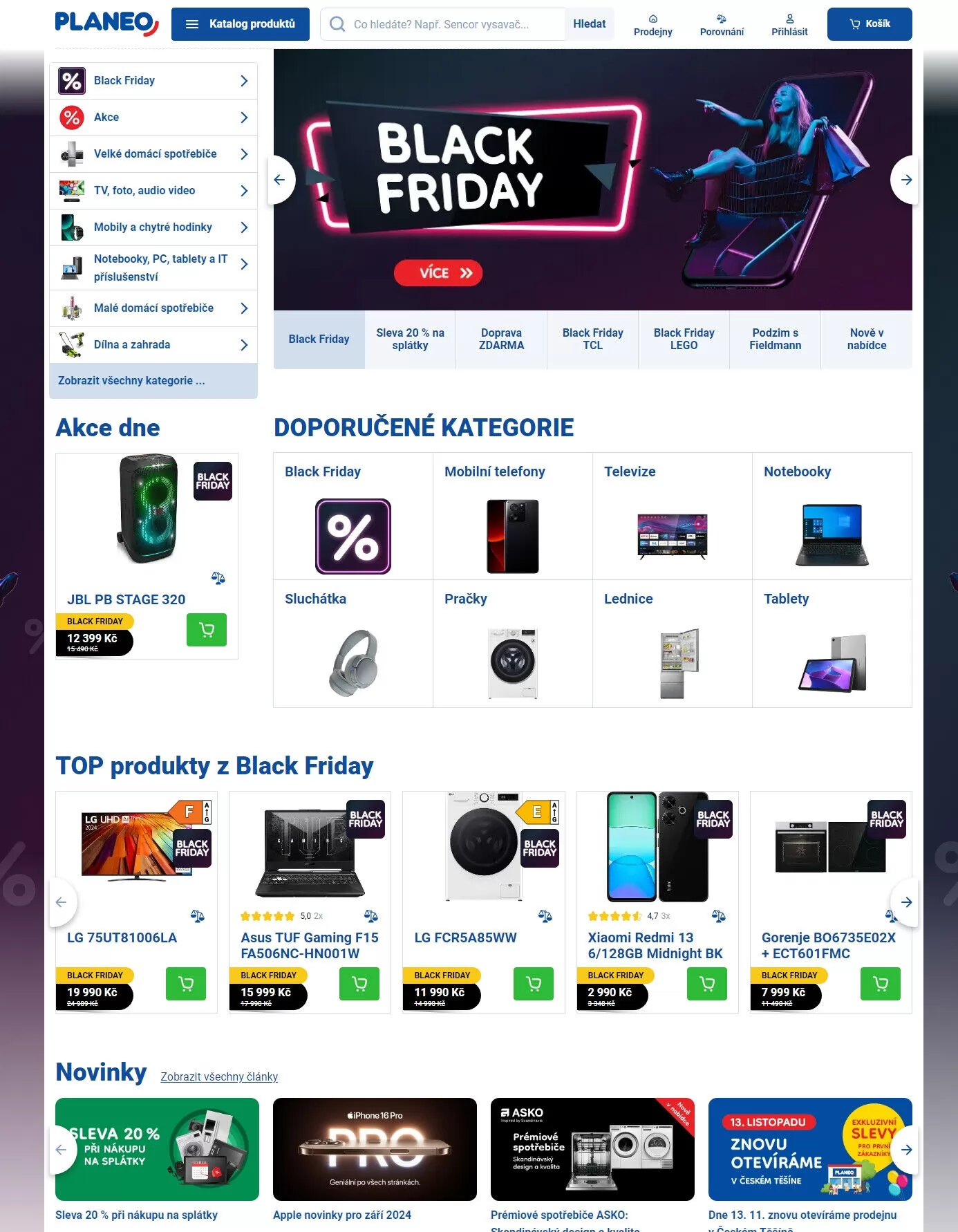 V letáku obchodu Planeo Elektro najdete širokou nabídku produktů v rámci akce Black Friday. Nabízíme velké domácí spotřebiče, jako jsou pračky a lednice, a také elektroniku, včetně televizí, mobilních telefonů a notebooků. Mezi doporučené kategorie patří sluchátka, malé domácí spotřebiče a příslušenství k IT.