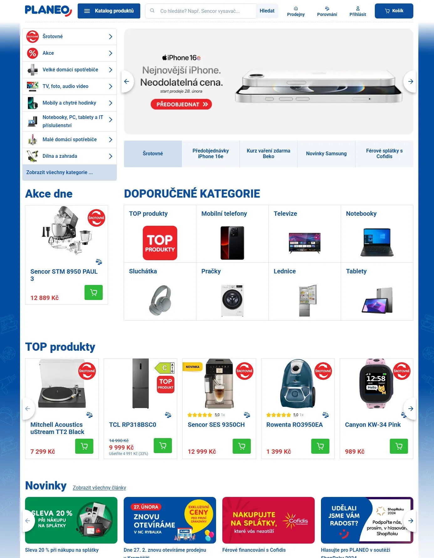 V letáku obchodu Planeo Elektro najdete širokou nabídku produktů za skvělé ceny. Mezi top produkty patří vysavač Sencor STM 8950 Paul za 12 889 Kč a sluchátka TCL RP318BSCO za 9 999 Kč, kde ušetříte 33 %. Nezapomeňte také na novinky, jako je iPhone 16e, který je k předobjednání za neodolatelnou cenu. V nabídce jsou i velké domácí spotřebiče, jako jsou pračky a lednice, a malé spotřebiče, včetně produktů značky Rowenta a Sencor. Využijte akce dne a sleva 20 % při nákupu na splátky. Navštivte naše prodejny a objevte další skvělé nabídky!