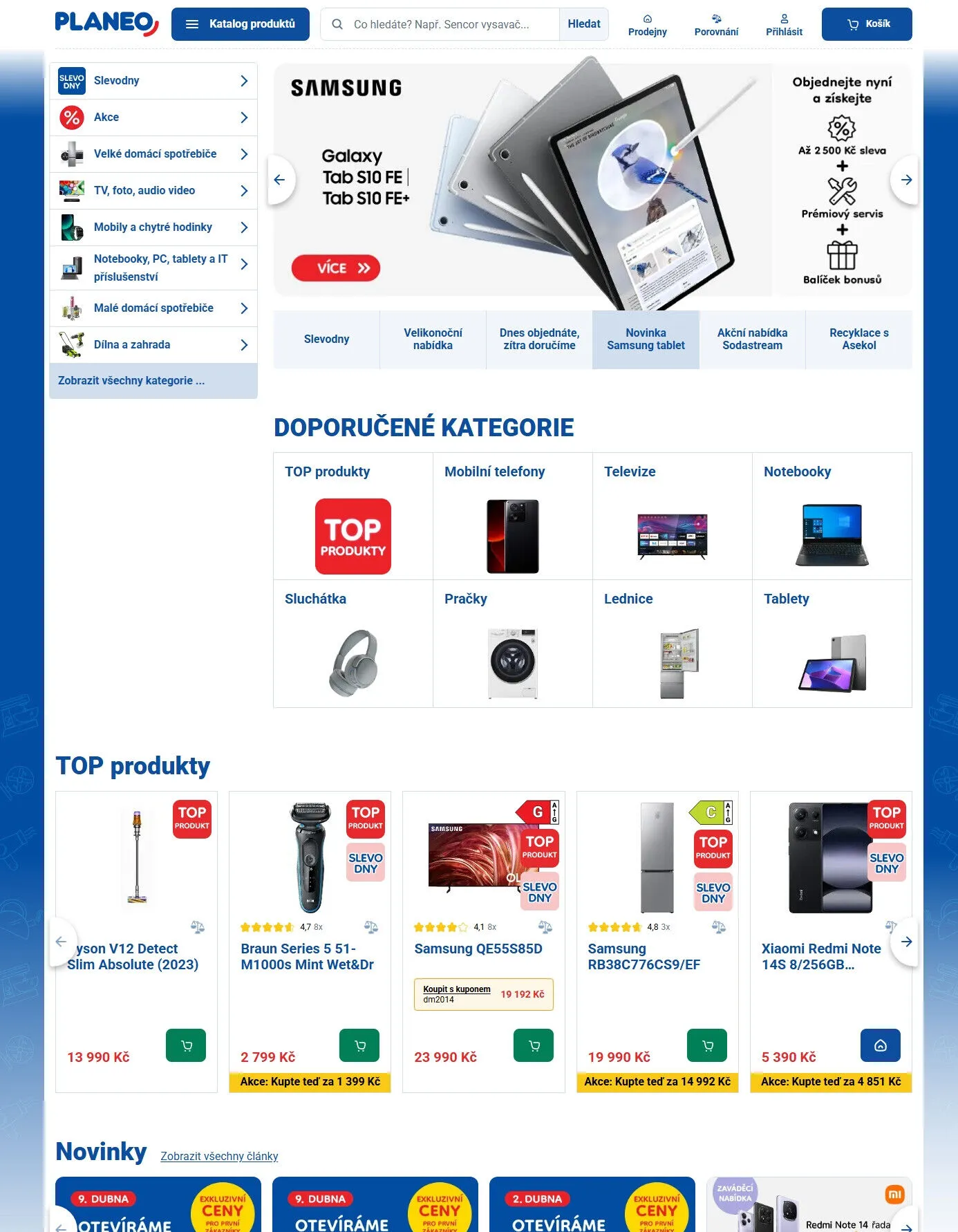 Mezi top produkty patří vysavač Dyson V12 Detect, Samsung Galaxy Tab a sluchátka Braun Series 5. Využijte akční nabídky a získejte slevy až 2500 Kč. Objednejte nyní a získejte prémiový servis a balíček bonusů.