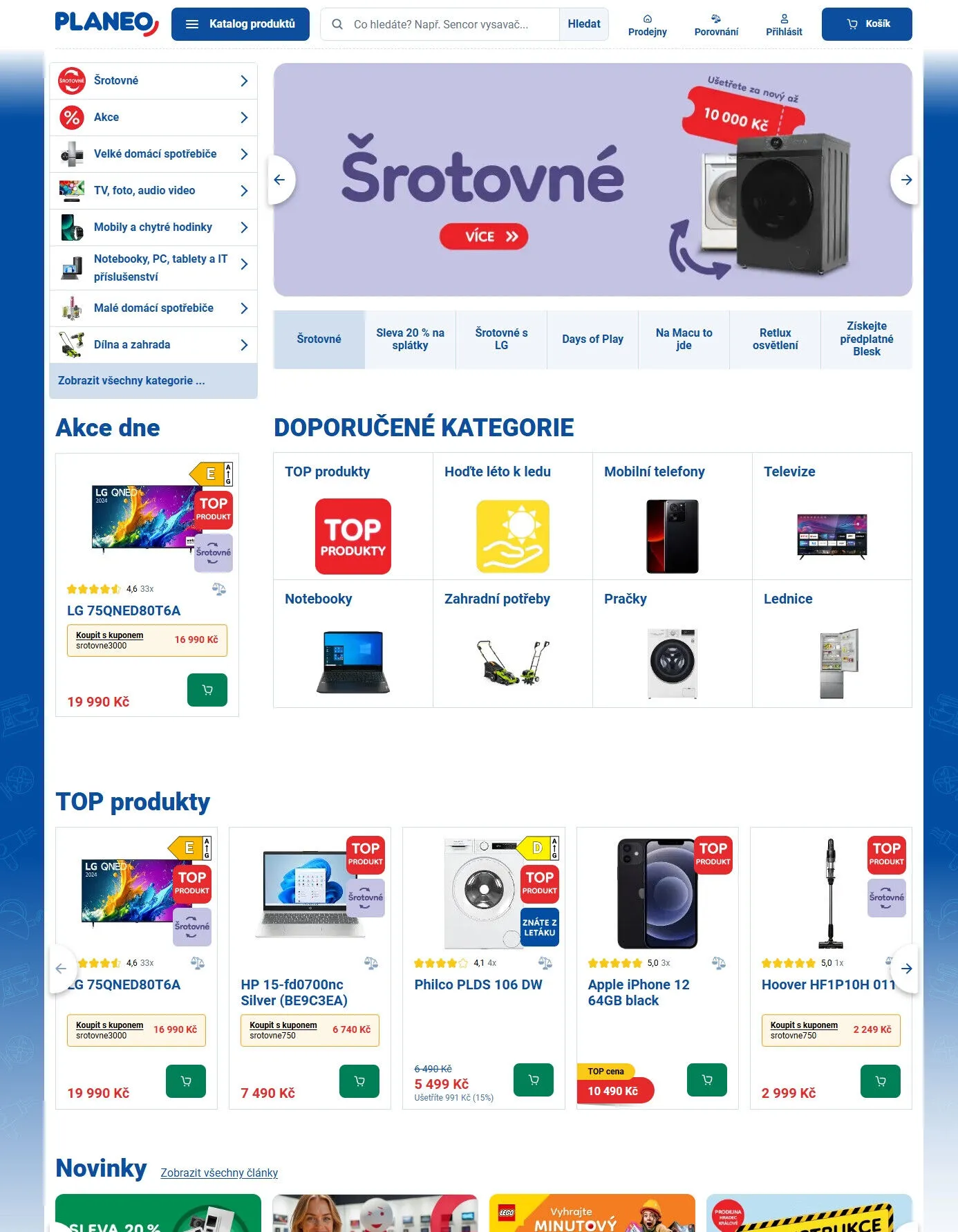 V letáku obchodu Planeo Elektro najdete širokou nabídku produktů pro vaši domácnost. Nabízíme velké domácí spotřebiče, jako jsou pračky a lednice, a také malé domácí spotřebiče, včetně vysavačů značky Sencor. Pro milovníky techniky máme v nabídce televizory, fotoaparáty a audio zařízení.