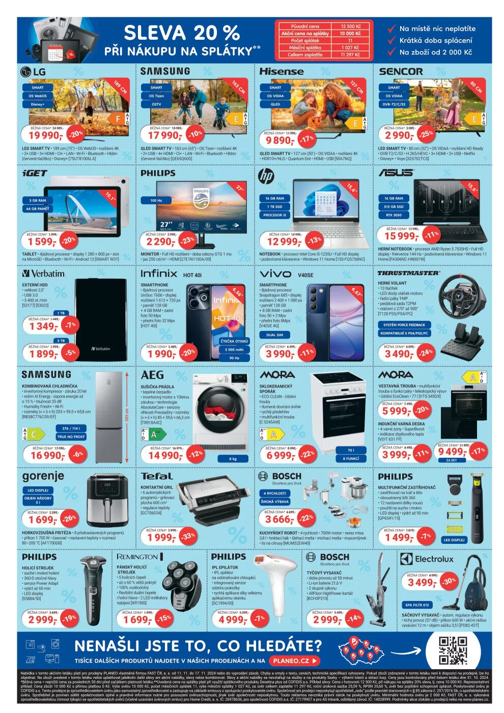 V letáku obchodu Planeo najdete širokou nabídku produktů se slevou až 20 %. Mezi zajímavé položky patří tablety Samsung, fritézy Gorenje a stroje Philips. Nabízíme také robotické vysavače Bosch a sklokeramické varné desky. Nezapomeňte se podívat na herní volant Sencor a zastřihovače Philips. Všechny produkty můžete zakoupit na splátky s krátkou dobou splácení. Pokud jste nenašli to, co hledáte, navštivte naše prodejny nebo webové stránky, kde najdete tisíce dalších produktů.