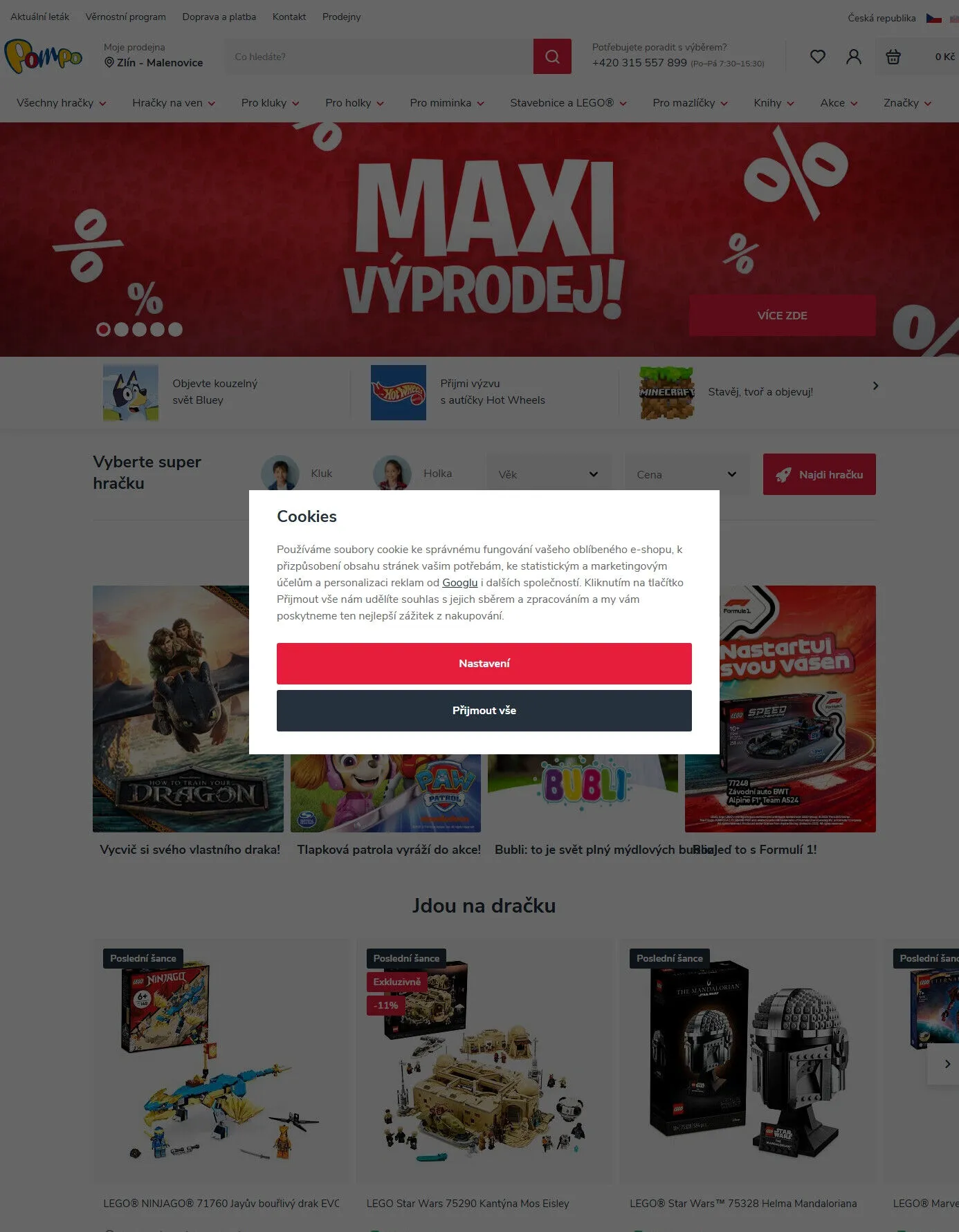 Najdete zde široký výběr hraček na ven, stavebnice a LEGO pro všechny věkové kategorie.