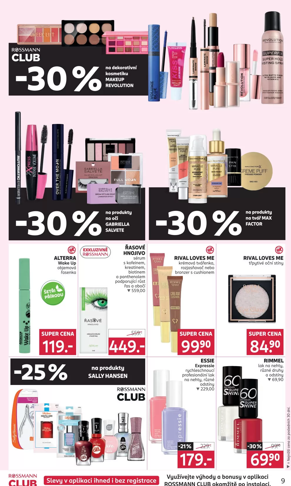 V letáku obchodu ROSSMANN drogerie najdete širokou nabídku dekorativní kosmetiky za skvělé ceny. Mezi produkty se objevují značky jako Makeup Revolution, Salvete a Alterra. Například, Alterra nabízí objemovou řasenku Wake Up za super cenu 119 Kč.