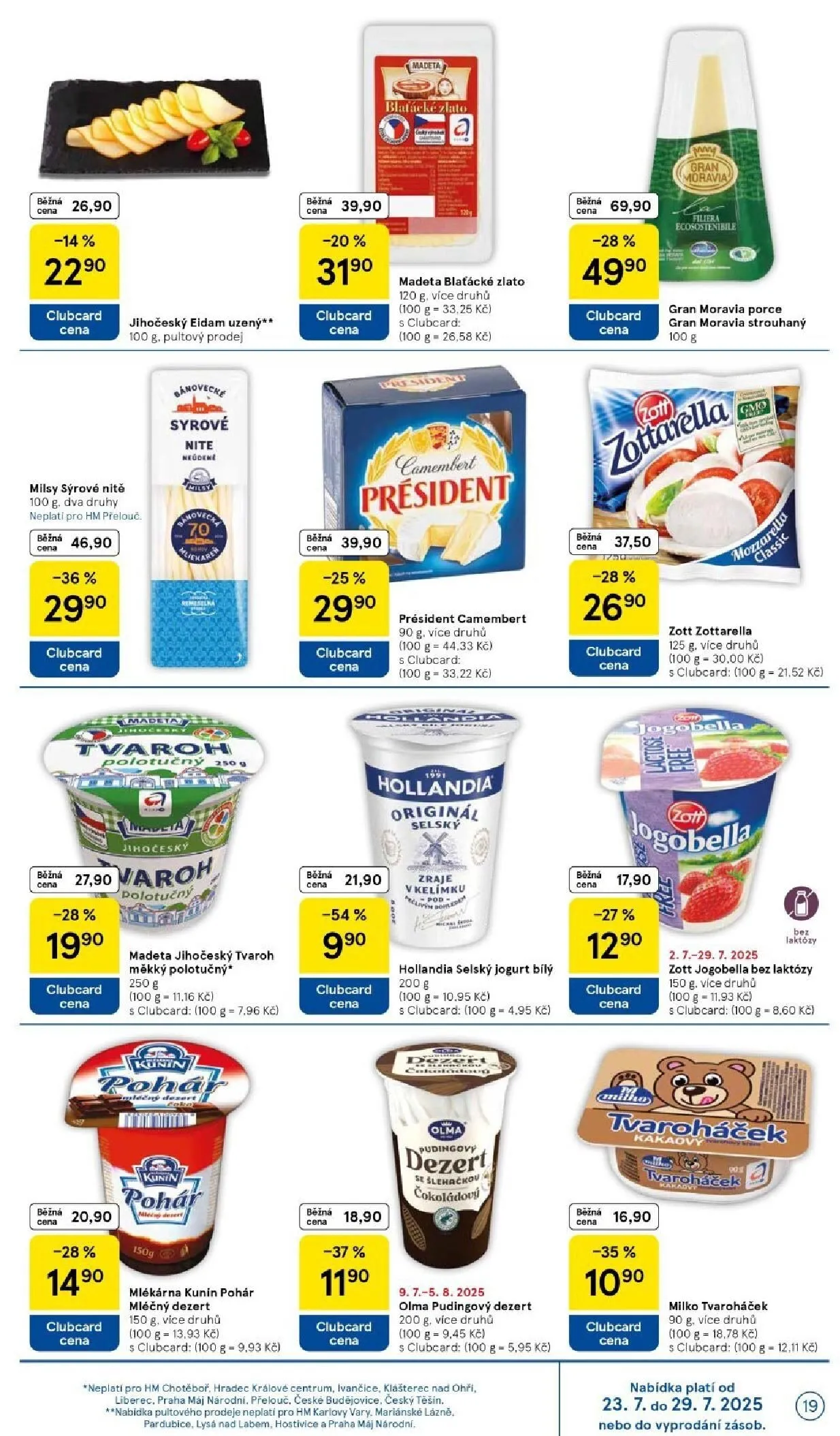 Dalšími lákadly jsou gran moravia porce a strouhaný sýr, které jsou nyní za 37,50 Kč a 46,90 Kč. Nezapomeňte také na president camembert za 39,90 Kč, nebo madeta jihočeský tvaroh měkký polotučný za 19,90 Kč.