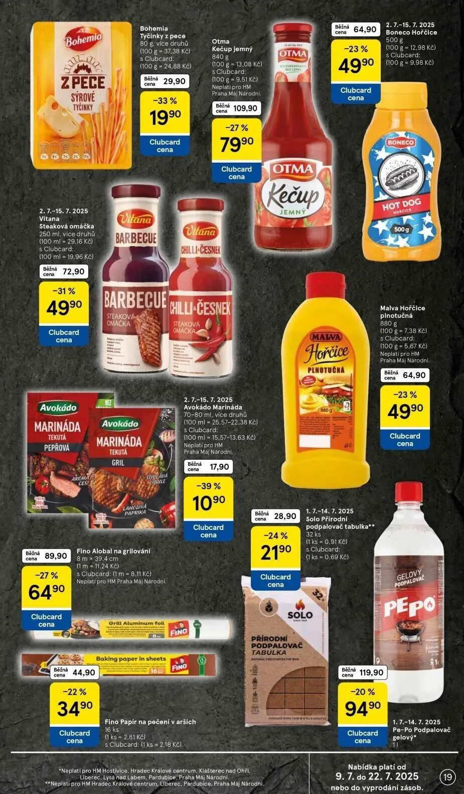V letáku obchodu Tesco najdete širokou nabídku produktů za skvělé ceny. Mezi nimi jsou například Bohemia tyčinky z pece, které jsou k dostání v různých druzích za 29,90 Kč (s Clubcard 19,90 Kč). Dále si můžete pořídit jemný barbecue kečup o objemu 840 g za 109,90 Kč (s Clubcard 79,90 Kč).