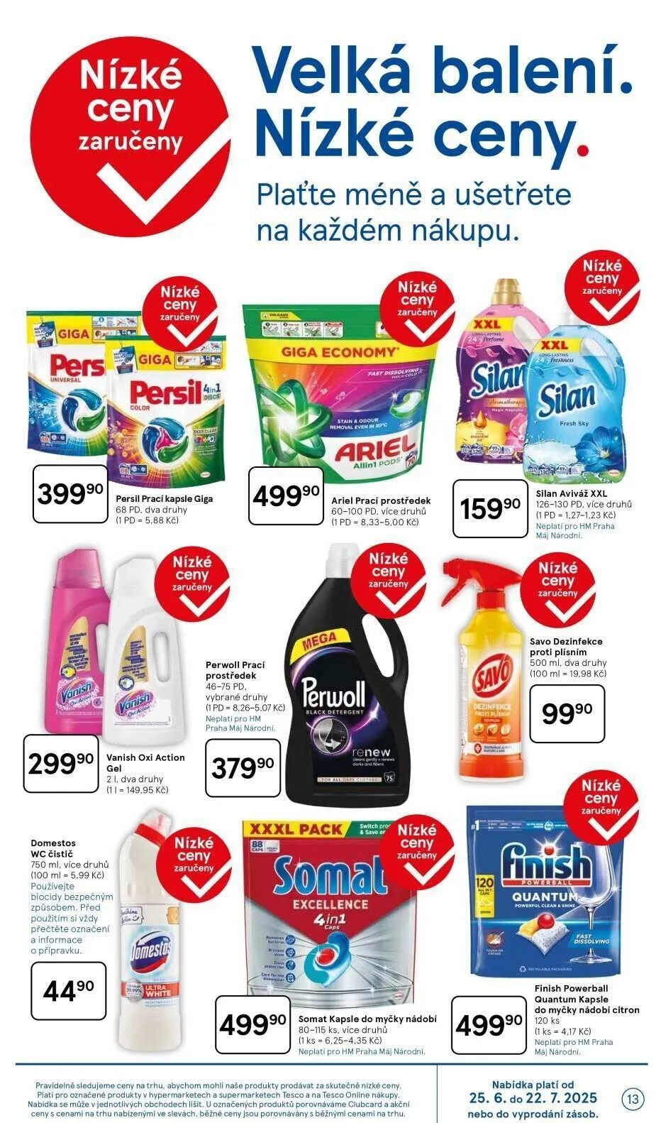 V letáku obchodu Tesco najdete širokou nabídku produktů za nízké ceny, které jsou zaručeny. Mezi nimi jsou například prací kapsle Persil a Ariel, které nabízíme v různých baleních. Dále si můžete vybrat z aviváže Silan a dezinfekce Savo, které jsou také k dispozici v atraktivních velikostech.