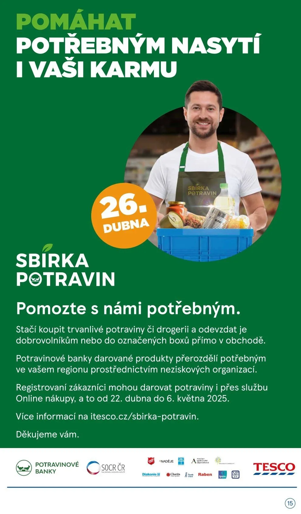 Od 22. dubna do 6. května 2025 probíhá sbírka potravin v obchodech Tesco.