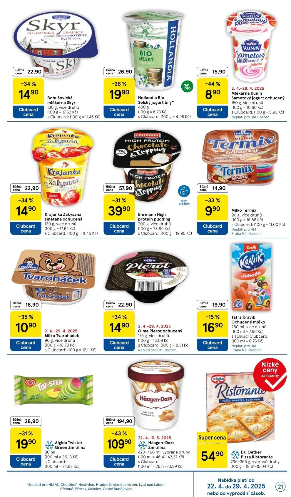 V letáku najdete také zmrzliny, jako je Haagen-Dazs a Algida Twister, které jsou nyní v akci. Nabídka platí od 22. 4. do 29. 4. 2025 nebo do vyprodání zásob. Neváhejte a využijte skvělé ceny!