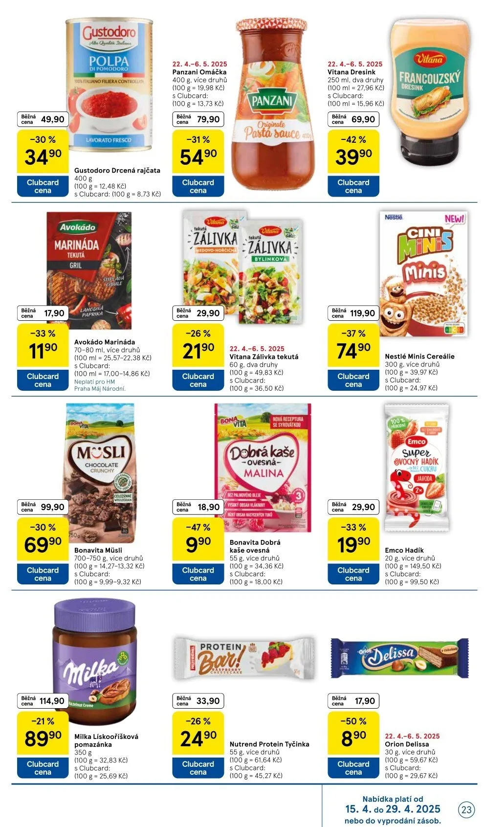 Pokud máte rádi müsli, Bonavita nabízí 700-750 g za 99,90 Kč, s Clubcard za 69,90 Kč. Milka lískooříšková pomazánka 350 g je nyní za 29,90 Kč, s Clubcard za 21,90 Kč.