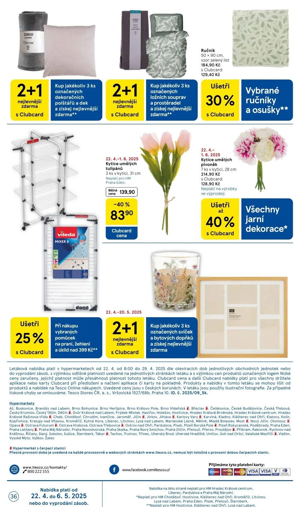 Nezapomeňte na další akce, jako je ušetření při nákupu vybraných ručníků a osušek. Všechny jarní dekorace jsou nyní v akci, takže si můžete zkrášlit svůj domov za skvělé ceny. Nabídka platí do vyprodání zásob, tak neváhejte a navštivte nás!