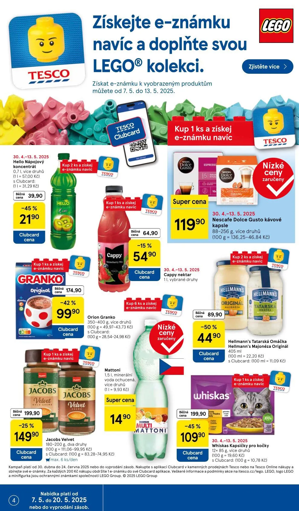 Dalšími lákadly jsou kávové kapsle Nescafé Dolce Gusto, které si můžete pořídit za 149,90 Kč, a tatarská omáčka Hellmann's za 22,20 Kč za 100 ml. Nezapomeňte také na Whiskas kapsičky pro kočky, které jsou nyní za 109,90 Kč.