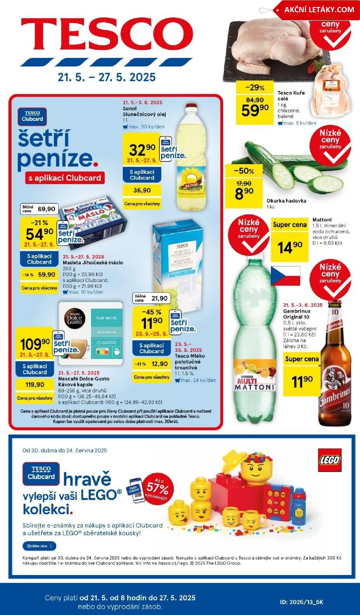 V letáku obchodu Tesco na období od 21. 5. do 27. 5. 2025 najdete širokou nabídku produktů za zvýhodněné ceny. Například slunečnicový olej je k dispozici za 36,90 Kč s aplikací Clubcard. Tesco chlazené kuře můžete pořídit za skvělou cenu 59,90 Kč.