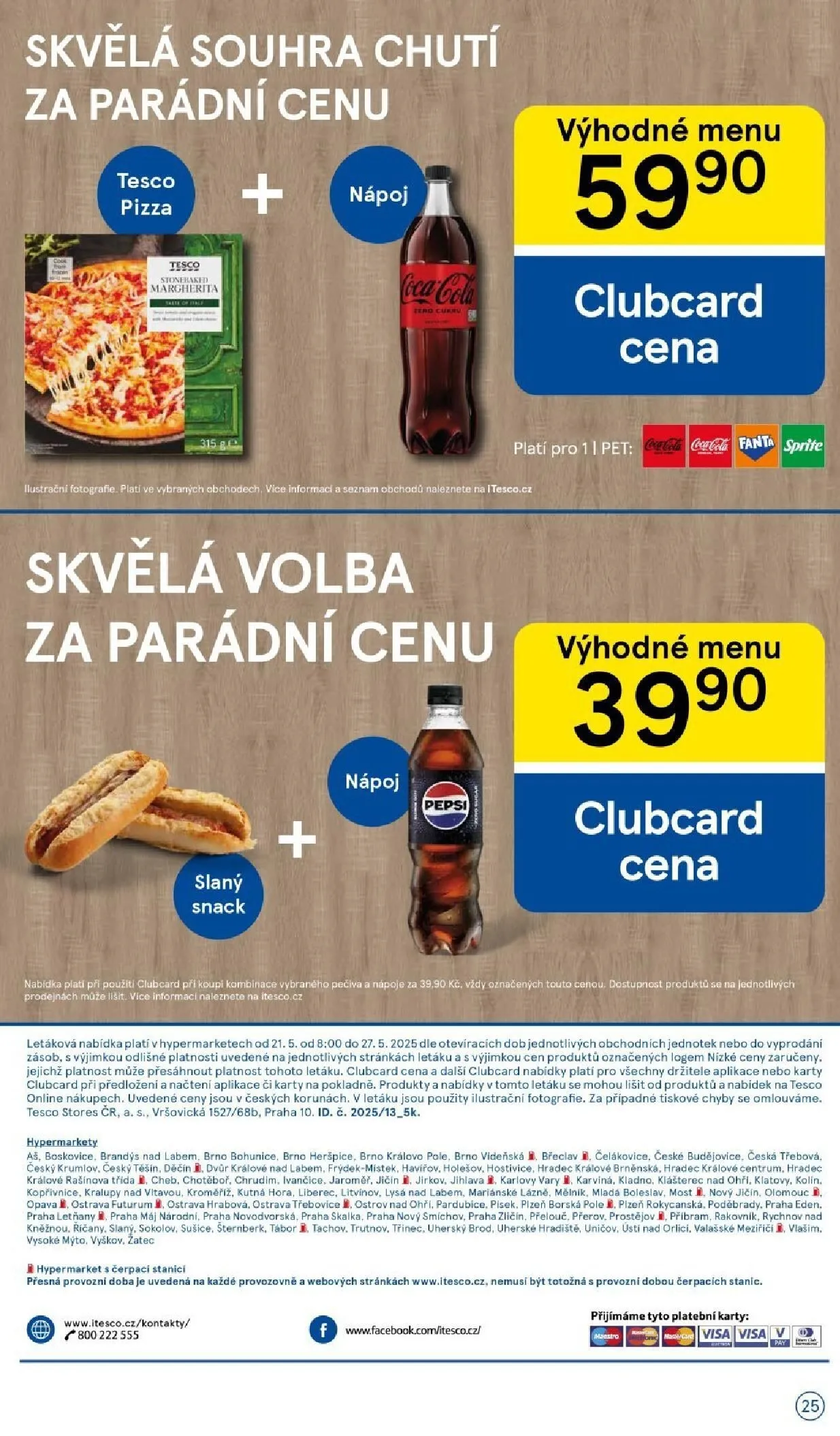 Nezapomeňte na výhodné menu, které zahrnuje slané snacky a nápoje za skvělou cenu 39,90 Kč při použití Clubcard.