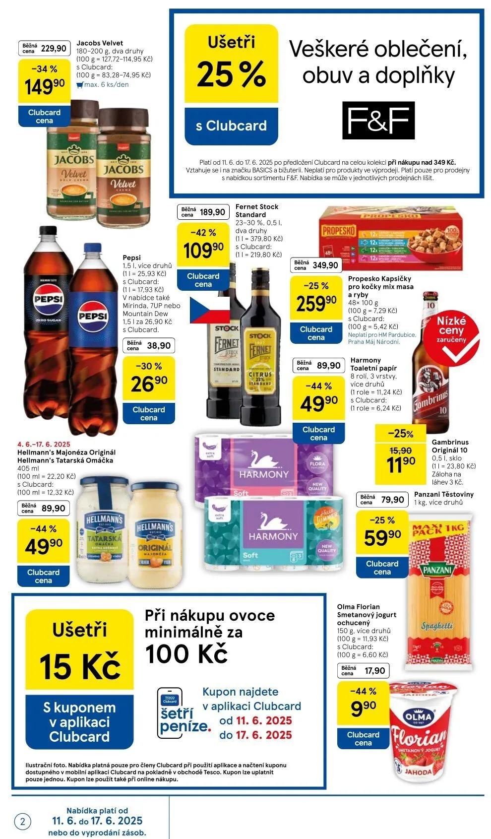 Nezapomeňte také na speciální nabídky pro členy Clubcard, jako jsou slevy na ovoce a další produkty. Akce platí od 11. do 17. června 2025 nebo do vyprodání zásob. Ušetřete s Tesco!