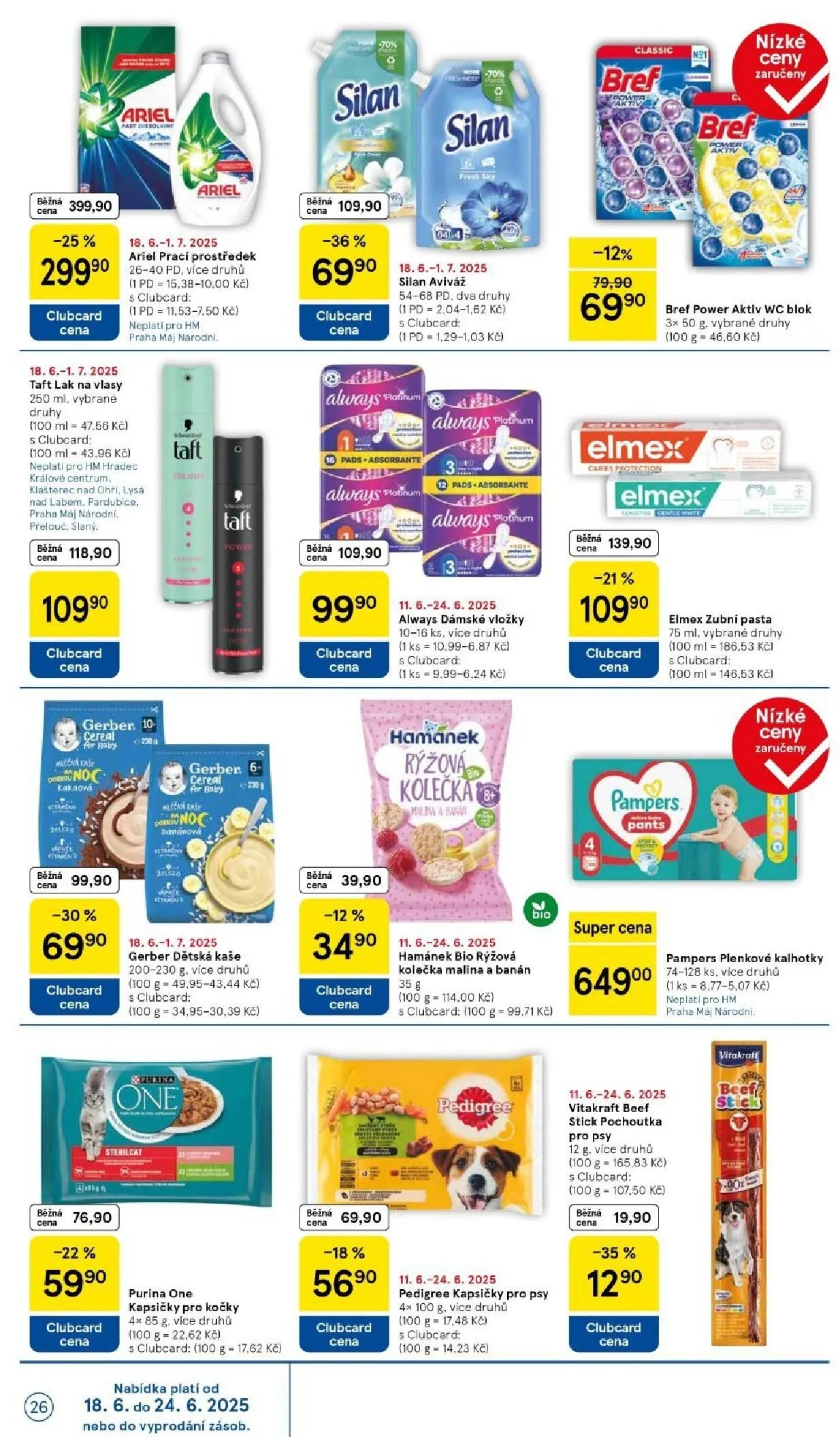 Nezapomeňte také na nabídku pro domácí mazlíčky, jako jsou kapsičky Purina One pro kočky za 22,62 Kč a plenkové kalhotky Pampers za 649,00 Kč.