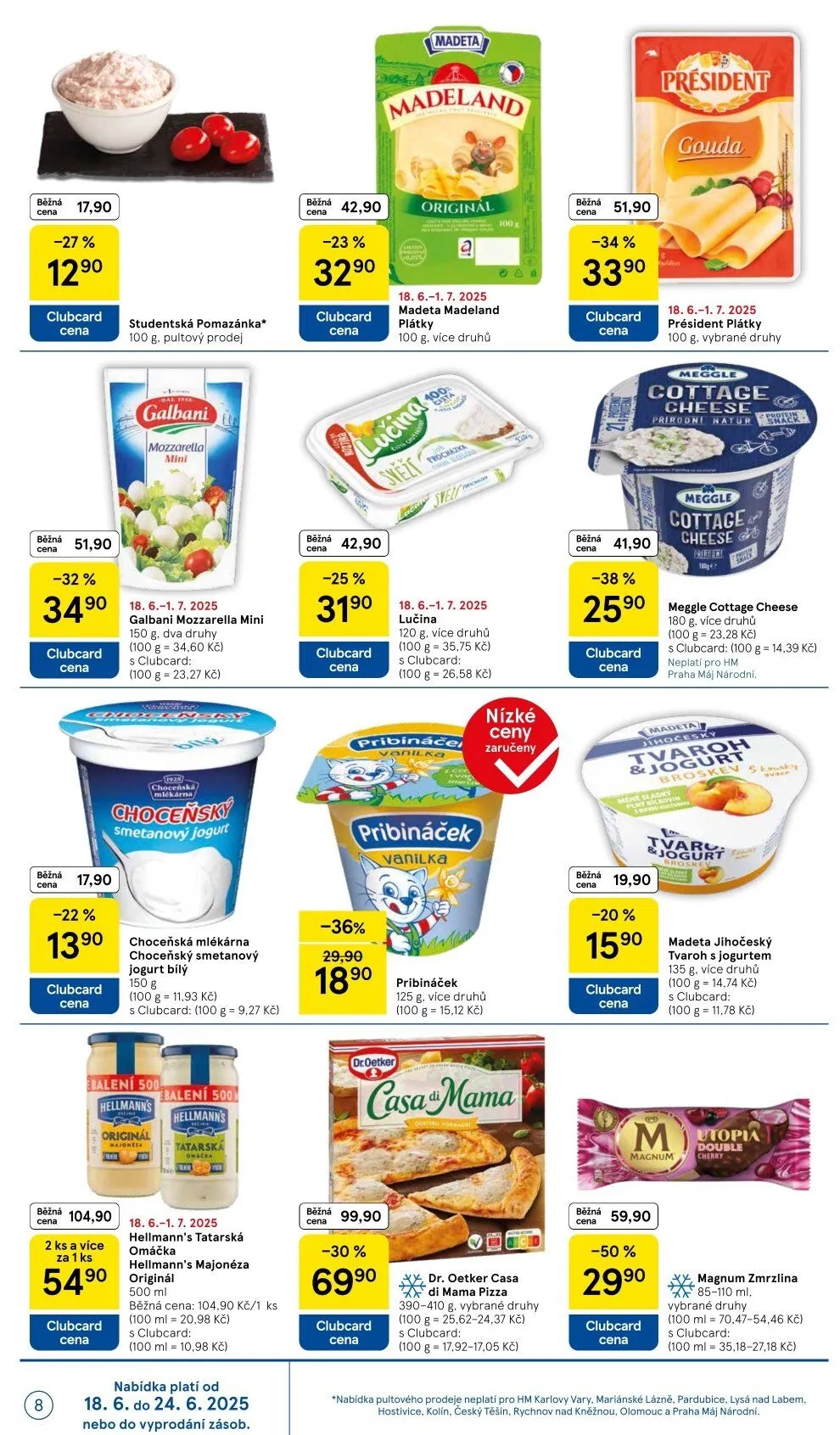 V letáku obchodu Tesco najdete širokou nabídku kvalitních mléčných výrobků a dalších potravin za zvýhodněné ceny. Například Madeta originál je nyní za 42,90 Kč s 23% slevou. Pro studenty je připravena studentská pomazánka za 17,90 Kč.