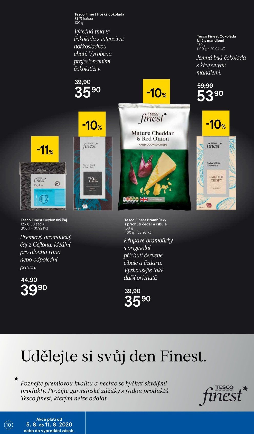 tesco finest hořká čokoláda 72 % kakaa 100 g výtečná tmavá čokoláda s intenzivní hořkosladkou chutí. vyrobena profesionálními čokolatiéry. 3590 -10% jiňčst• jiňöst* mature che ar & red onion hand cooked cr'sps tesco finest čokoláda bílá s mandlemi 180 g (100 g = 29,94 kč) jemná bílá čokoláda s křupavými mandlemi. 5390 sstodyr l crjsvy finesď tesco finest ceylonský čaj 125 g, 50 sáčků (100 g 31.92 kč) prémiový aromatický čaj z cejlonu. ideální pro dlouhá rána nebo odpolední pauzu. 3990 tesco finest brambůrky s příchutí čedar a cibule 150 g (100 g 23,93 kč) křupavé brambůrky s originální příchutí červené cibule a čedaru. vyzkoušejte také další příchutě 3' 590 udělejte si svůj den finest. 10 poznejte prémiovou kvalitu a nechte se hýčkat skvělými produkty. prožijte gurmánské zážitky s řadou produktů tesco finest, kterým nelze odolat. akce platí od 5. 8. do 11. 8. 2020 nebo do vyprodání zásob. tesco * fléiëšt