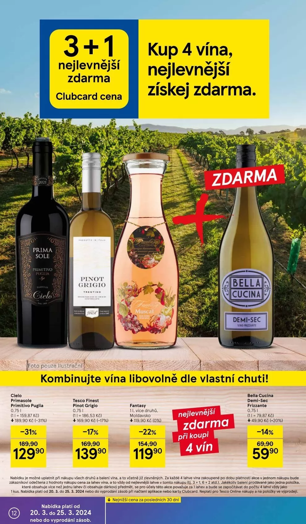 nabídku je možné uplatnit při nákupu všech druhů a baleni vina, a to včetně již zlevněných. za každé 4 lahve vina zakoupené po dobu platnosti akce v jednom nákupu bude