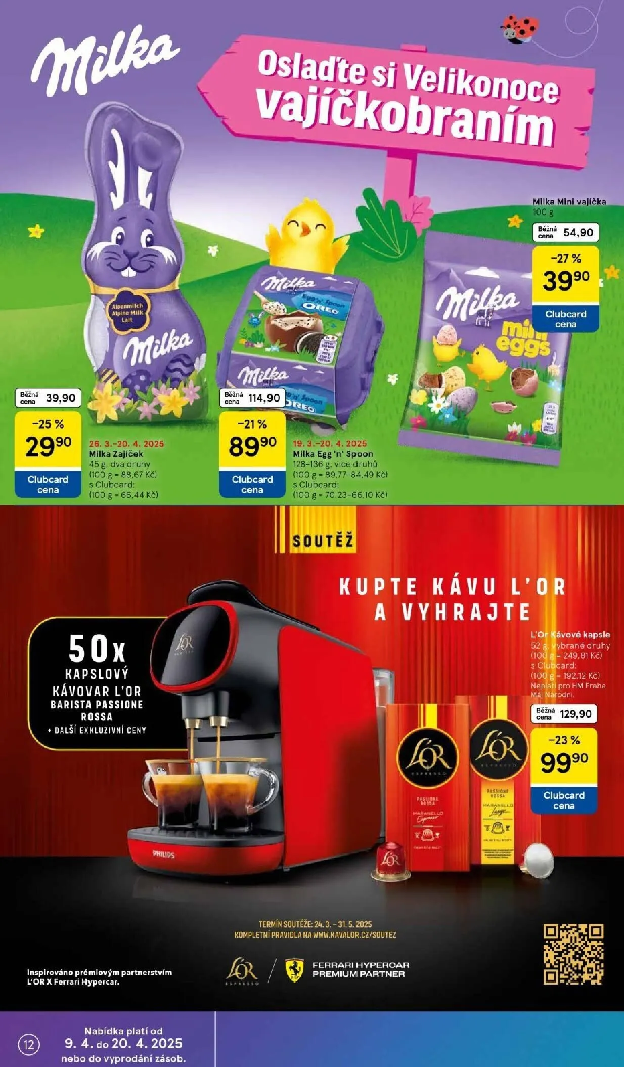 V letáku najdete Milka mini vajíčka za cenu 54,90 Kč, nyní se slevou 27 % na 39,90 Kč s Clubcard.