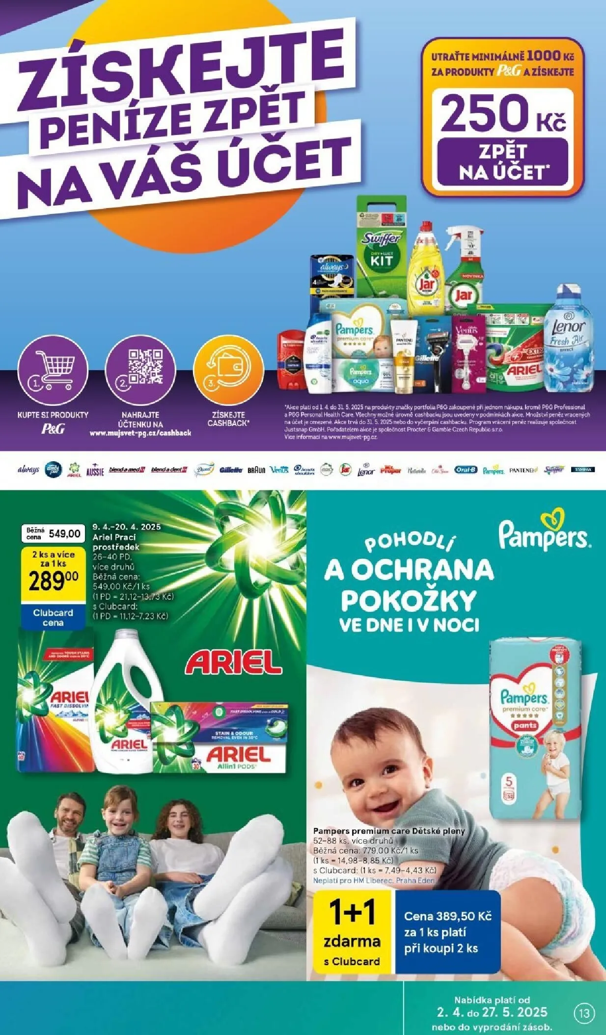Získejte peníze zpět při nákupu vybraných produktů, jako jsou Pampers a Ariel.