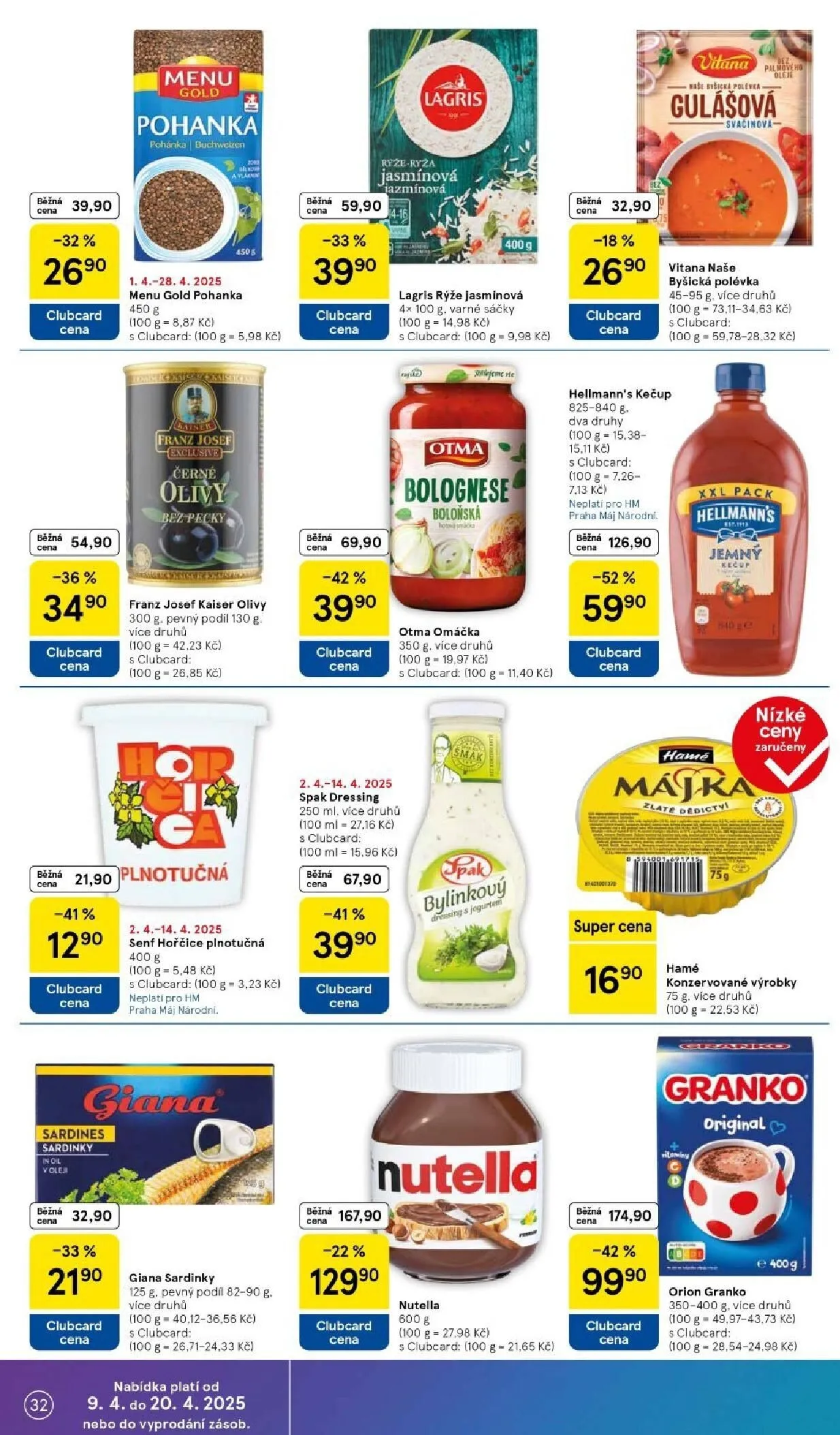 Sardinky Giana a Nutella jsou také v nabídce, přičemž Nutella je k dostání za 169,90 Kč. Akce platí od 2. do 14. dubna 2025 nebo do vyprodání zásob. Neváhejte a využijte skvělé ceny s Clubcard!