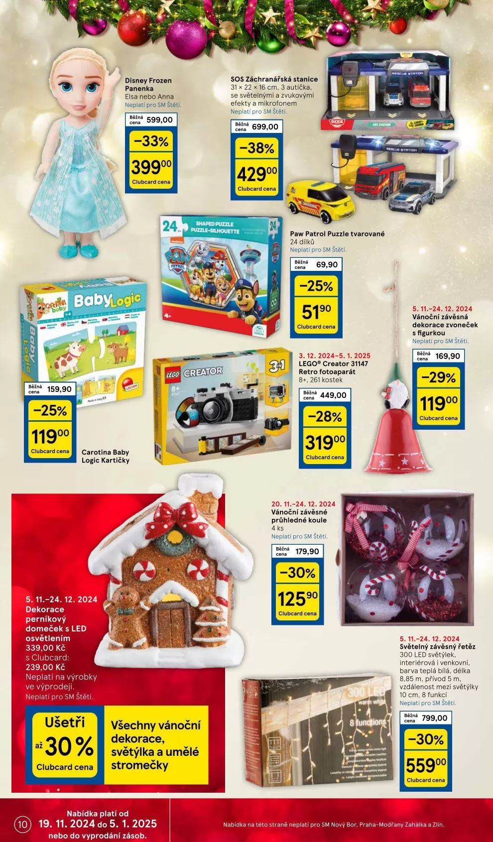 Vánoční dekorace jako průhledné koule a perníkový domeček s LED osvětlením jsou také v akci.