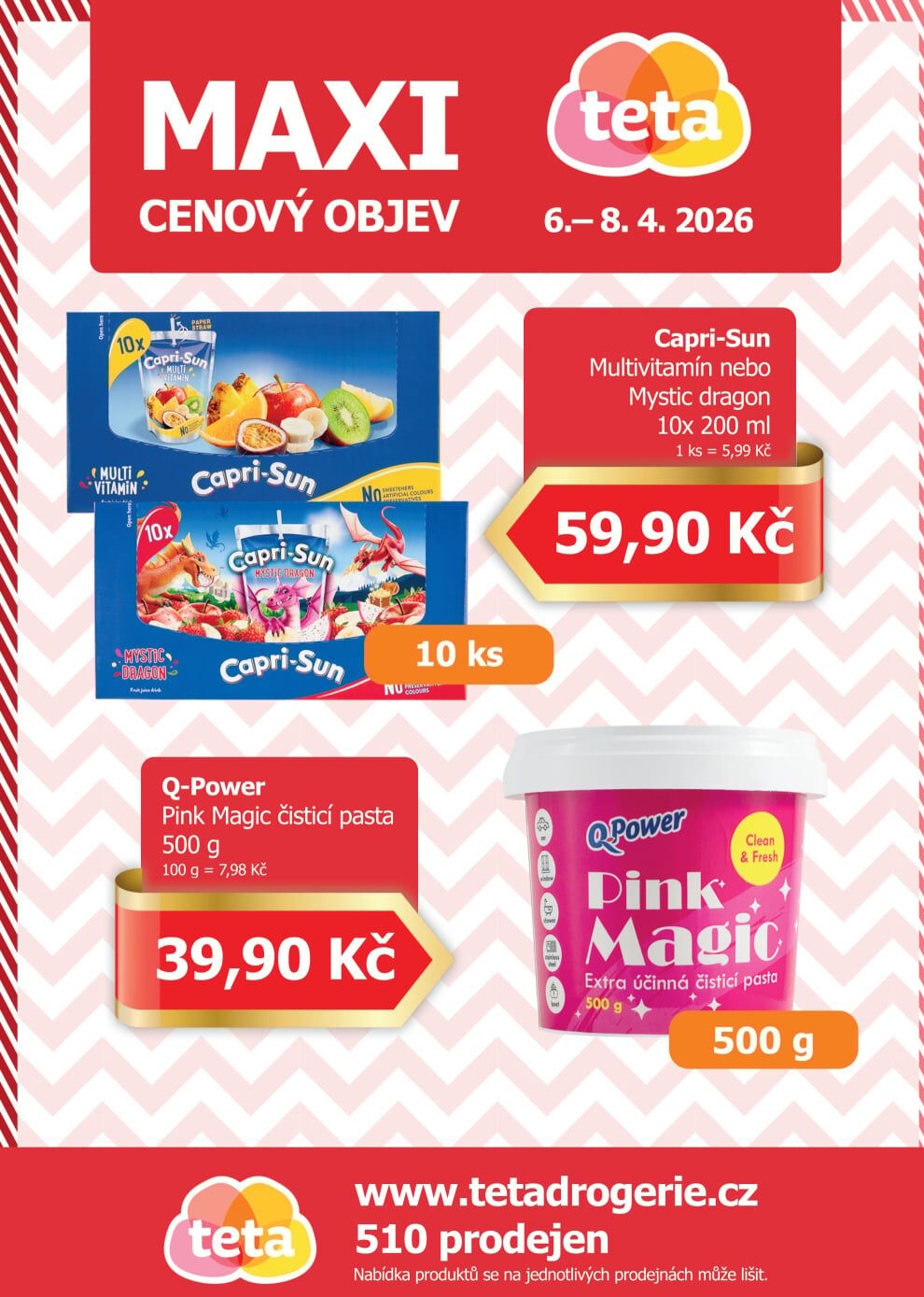 Teta drogerie akční leták: Maxi cenový objev od 6.4. - 8.4.2026 strana 1/1