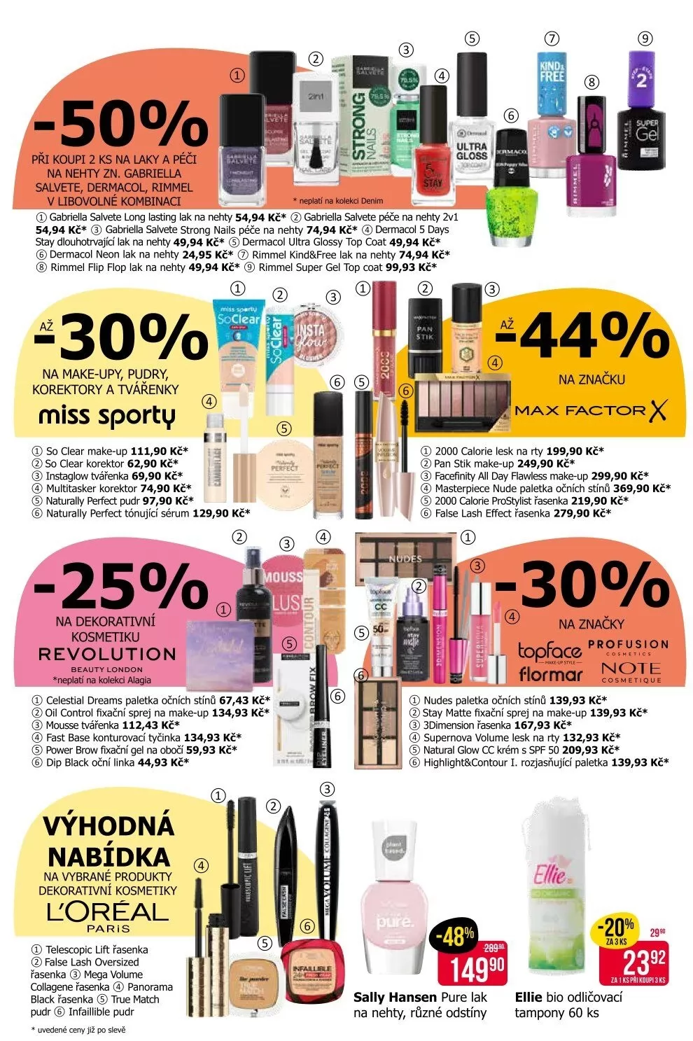 V letáku najdete i produkty jako Sally Hansen Pure lak na nehty a Ellie bio odličovací tampony.