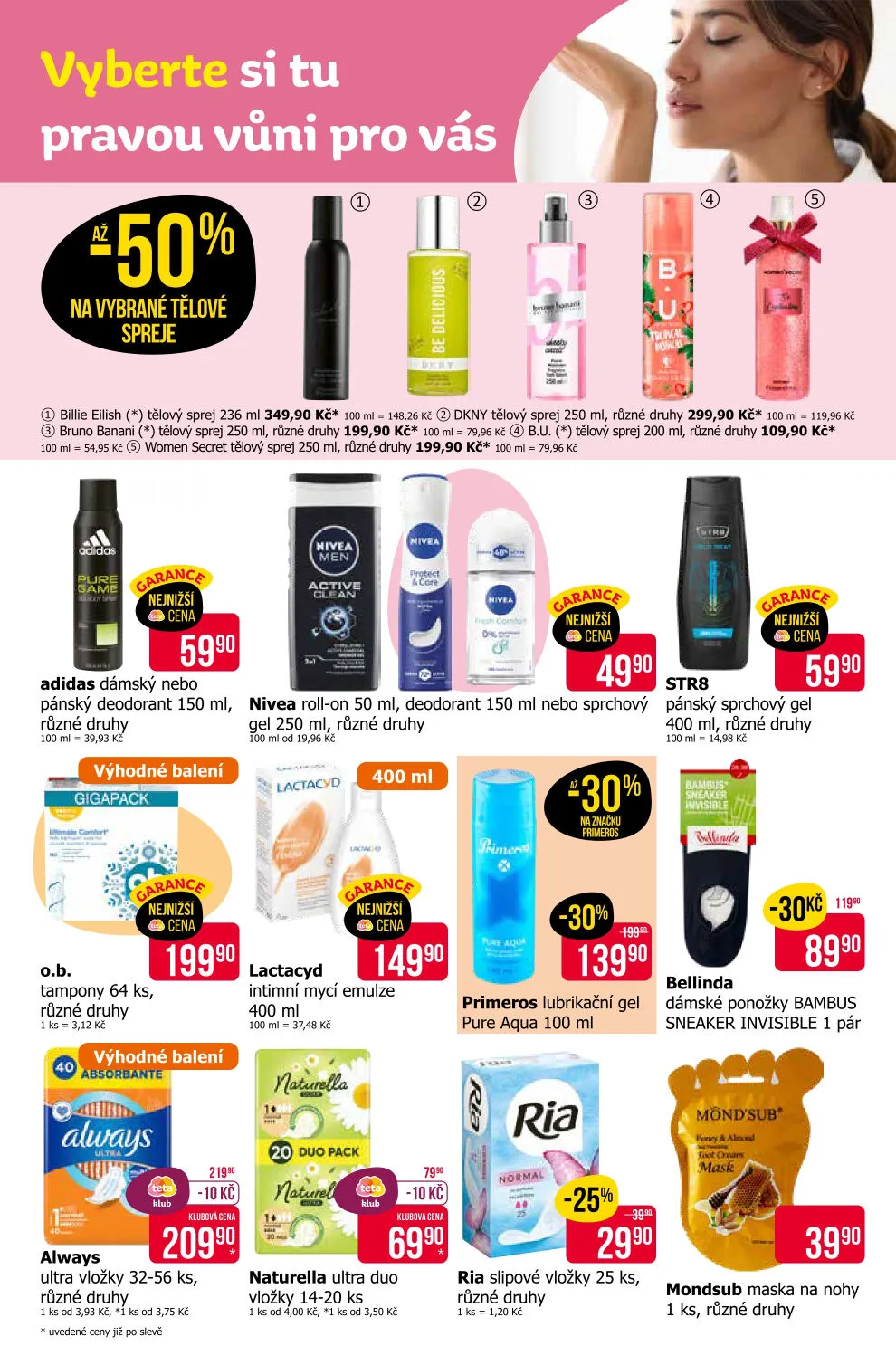 V akci také najdete tampony 64 ks za 49,90 Kč (3,12 Kč/ks) a Nivea roll-on 50 ml nebo deodorant 150 ml za 49,90 Kč.