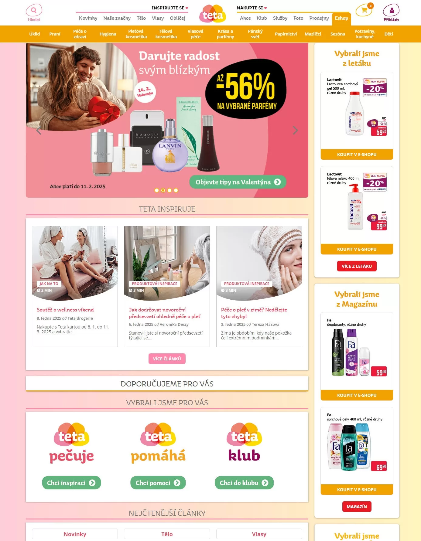 V letáku obchodu Teta drogerie najdete širokou nabídku produktů pro péči o tělo, pleť a vlasy. Objevte novinky v oblasti kosmetiky a inspirujte se tipy na valentýna. Nezapomeňte na akce platné do 11. 2. 2025, které zahrnují vybrané parfémy a další produkty.