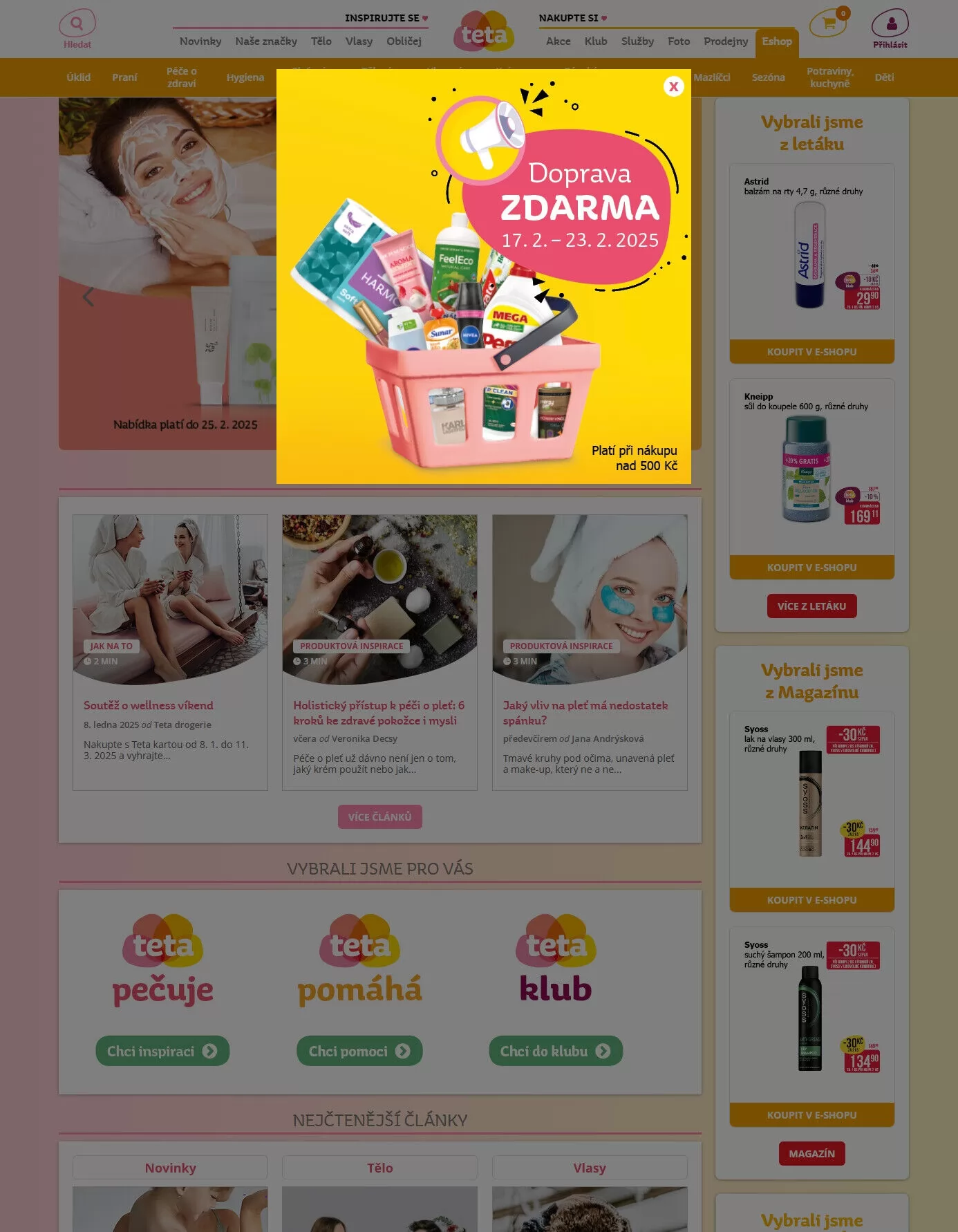 V letáku obchodu Teta drogerie najdete širokou nabídku produktů pro péči o vlasy, pleť a tělo. Mezi novinkami se objevují balzámy na rty značky Astrid, které jsou k dispozici v různých druzích. Dále si můžete vybrat z nabídky solí do koupele od Kneipp, které přinášejí relaxaci a osvěžení. Nezapomeňte také na laky na vlasy a suché šampony, které jsou ideální pro rychlou úpravu účesu. Akce platí do 25. 2. 2025 a při nákupu nad 500 Kč máte dopravu zdarma. Navíc se můžete zapojit do soutěže o wellness víkend. Nakupujte s Teta kartou a využijte výhodné nabídky!