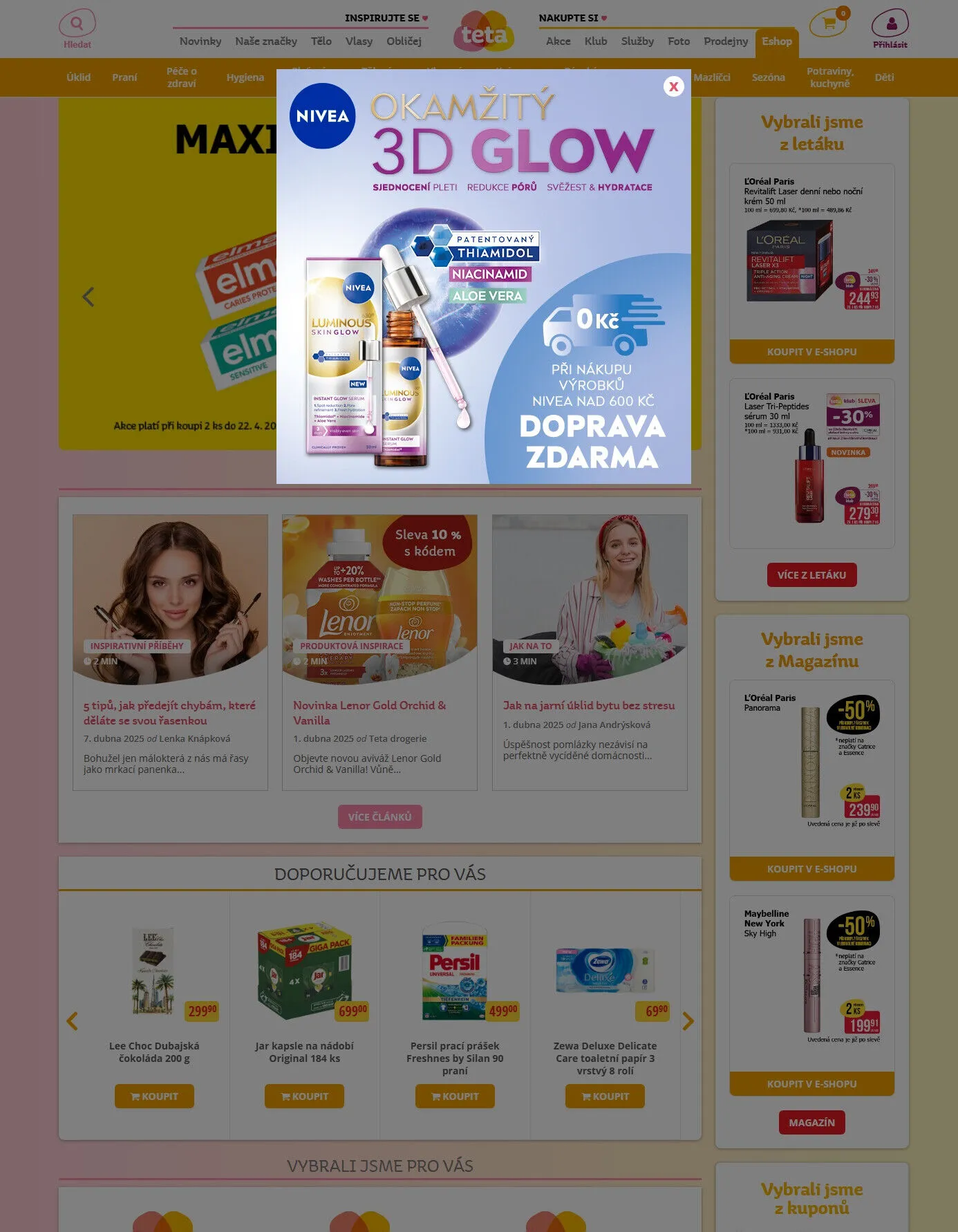 V letáku obchodu Teta drogerie najdete širokou nabídku produktů pro péči o vlasy, pleť a tělo. Mezi novinkami se objevuje aviváž Lenor Gold Orchid & Vanilla, která přináší jedinečnou vůni. Nezapomeňte také na akci, kdy při koupi dvou výrobků Nivea nad 600 Kč získáte dopravu zdarma a slevu 10 % s kódem.