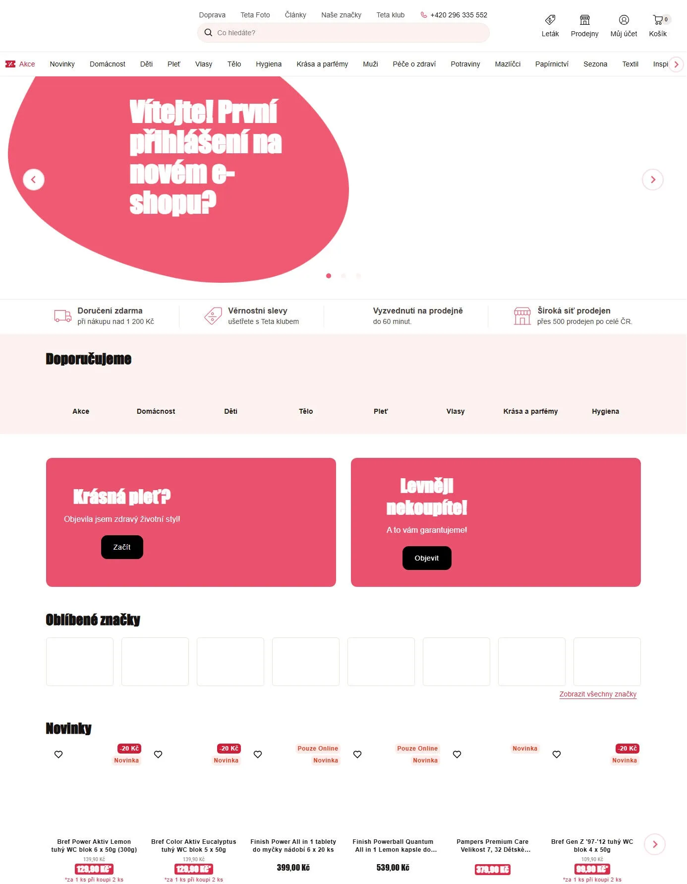 Teta drogerie nabízí také produkty pro péči o pleť, vlasy, tělo a hygienu, stejně jako široký sortiment pro domácnost a děti.