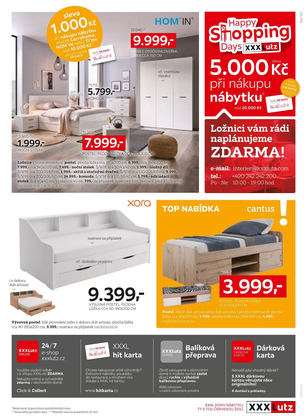 V letáku obchodu XXXLutz najdete širokou nabídku kvalitního nábytku za skvělé ceny. Mezi hlavní produkty patří elegantní postele s plochou lůžka od 3.999,- Kč, komody za 5.799,- Kč a praktické skříně s otočnými dveřmi od 9.999,- Kč. Vybírat můžete také z nočních stolků a úložných prostorů, které jsou ideální pro každou ložnici. Nezapomeňte využít možnost plánování ložnice zdarma a osobního odběru z e-shopu. S XXXL hit kartou získáte exkluzivní nabídky a výhody. Navštivte nás a objevte, jak snadno můžete zkrášlit svůj domov!