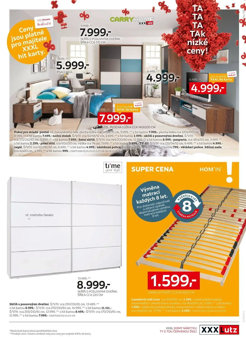 V letáku obchodu XXXLutz najdete širokou nabídku kvalitního nábytku za skvělé ceny. Například skříň s posuvnými dveřmi o šířce cca 170 cm je k dispozici za 7.999,- Kč, a s hit kartou dokonce za 5.999,- Kč. Pro mladé nabízíme postel s čalouněným čelem a plochou lůžka cca 140x200 cm za 7.999,- Kč, s hit kartou za 7.499,- Kč.