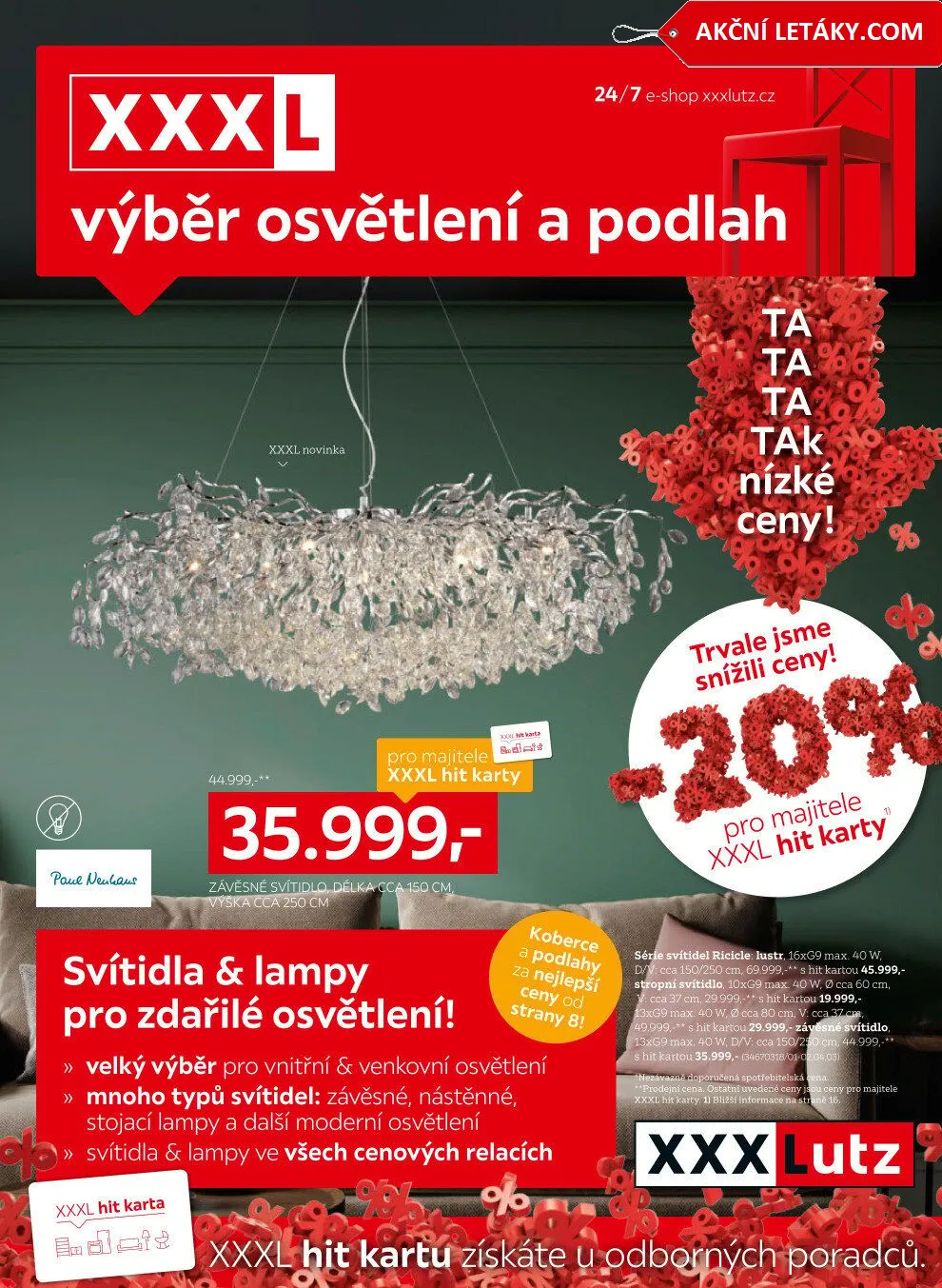 V letáku obchodu XXXLutz najdete široký výběr osvětlení a podlahových krytin za skvělé ceny. Nabízíme moderní závěsná svítidla, nástěnné lampy a stojací lampy, které dokonale osvětlí váš interiér. Všechny produkty jsou dostupné ve všech cenových relacích, takže si vybere každý. Navíc jsme trvale snížili ceny, abyste mohli nakupovat výhodněji. Nezapomeňte využít naši hit kartu pro ještě lepší nabídky! Přijďte si vybrat to pravé osvětlení pro váš domov!