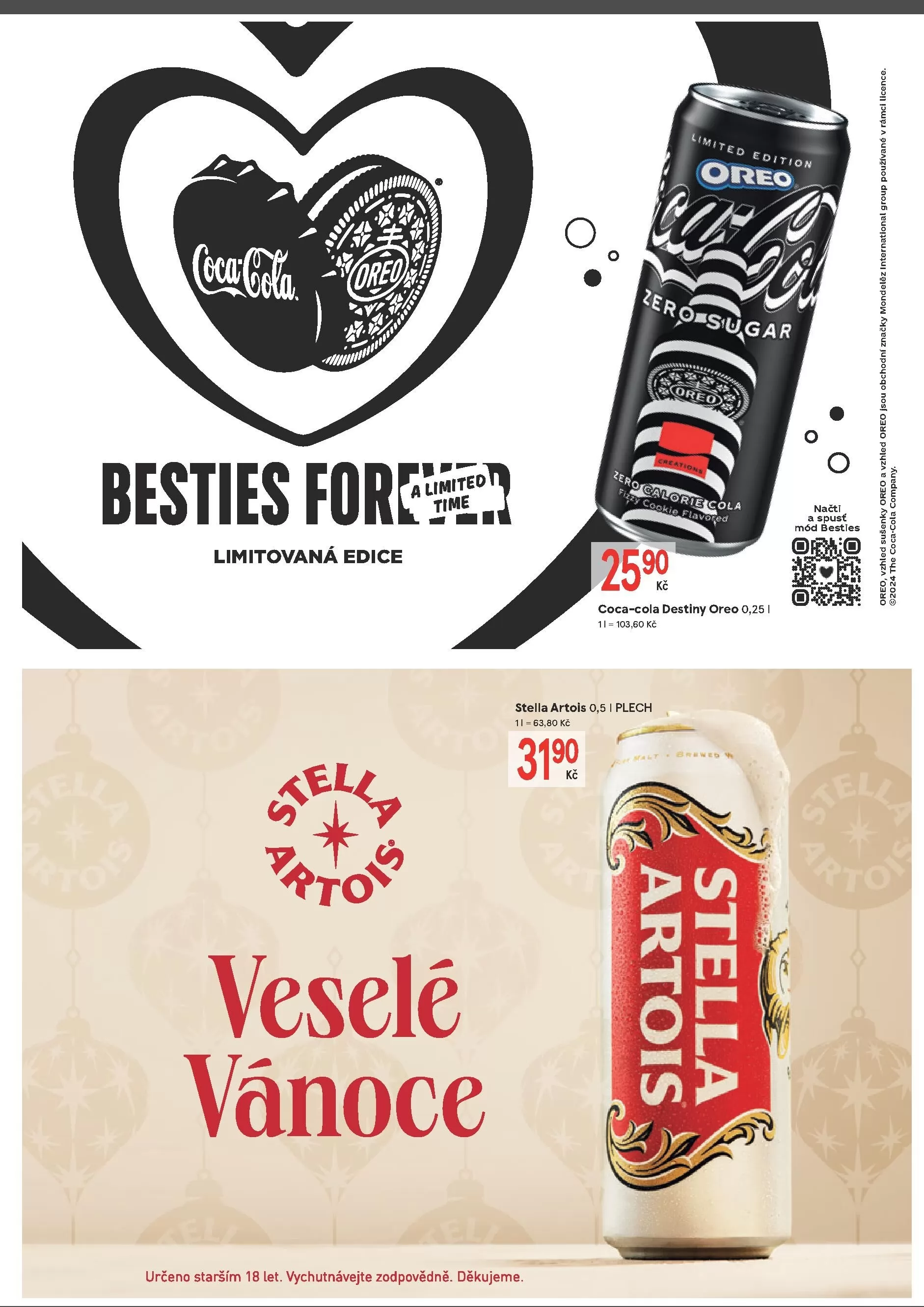Mezi nimi je například Coca-Cola Destiny Oreo 0,25 l za 25,90 Kč a Stella Artois 1 plech za 63,80 Kč.