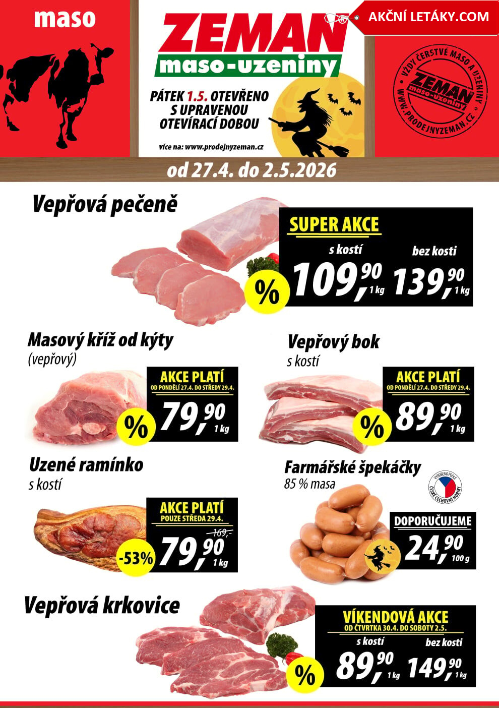 ZEMAN maso - uzeniny akční leták: od 27.4. - 2.5.2026 strana 1/2