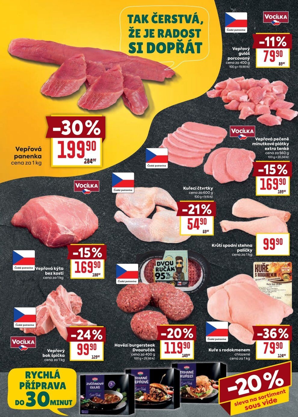 Maso na guláš vepřové Vocílka akční sleva v Bille (5.5. do 13.5. 2025)
